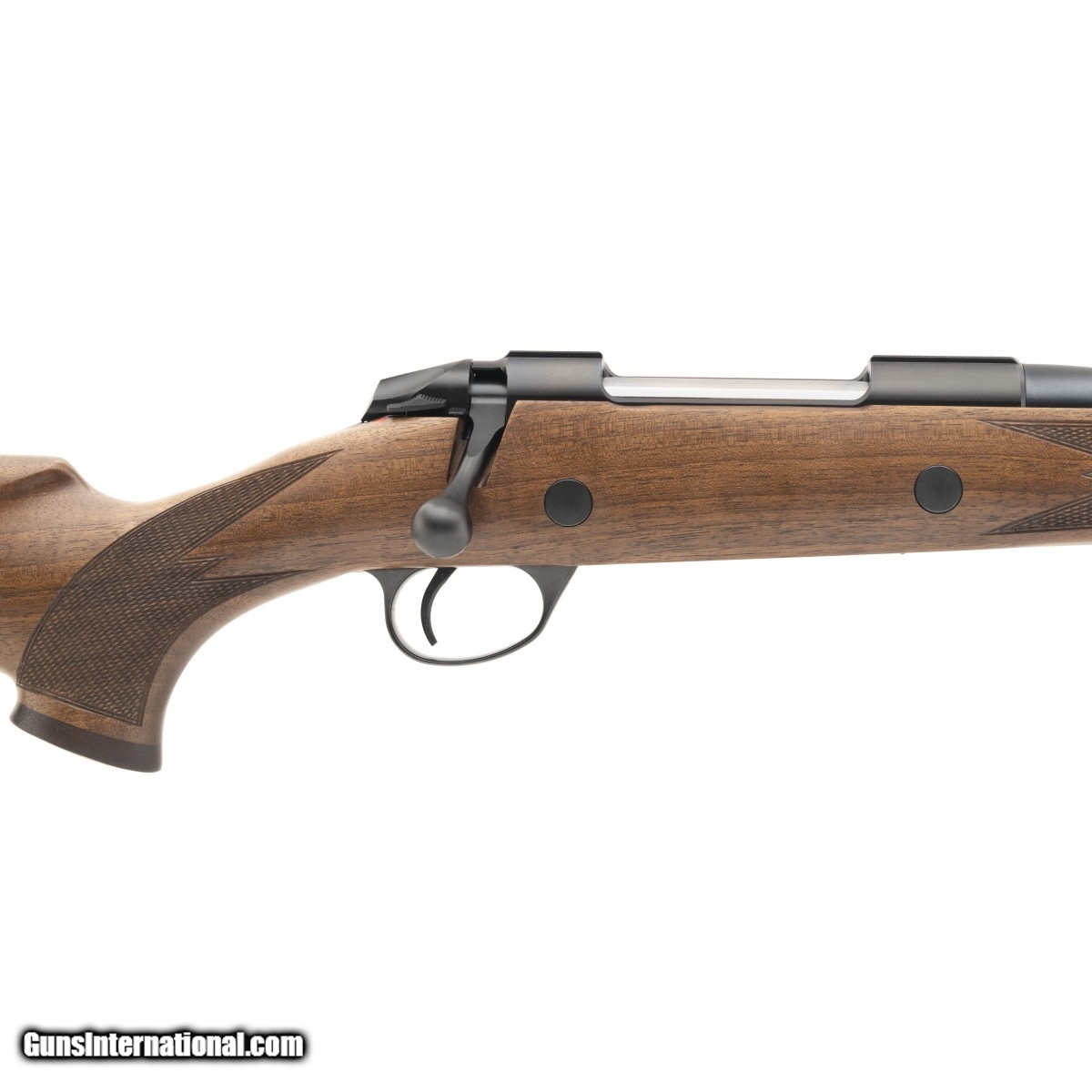 High grade sporting rifle with beautiful Schnabel-styled walnut stock with pad. Single set trigger, integrated iron sights, and black barrel/receiver finish. has 22 7/16"" barrel.