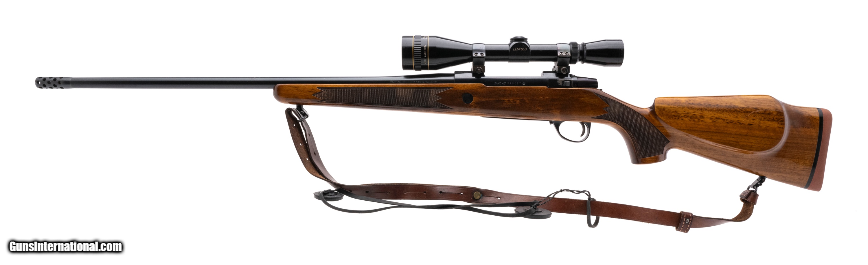 Description: "SN: 599027. Made in 1970, .25-'06 Remington with an 24"" barrel and compensator. Bore is bright with excellent rifling. Bolt-Action rifle with a Leupold 4x12 Scope. Finish is in very good condition with minor wear near the bolt release. Wood stock is in very good condition with minor wear on the cheek pad of the stock. Overall condition is very good. Comes with leather sling. SOLD |
