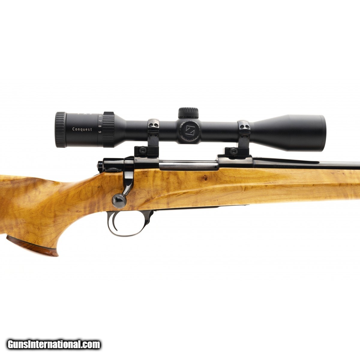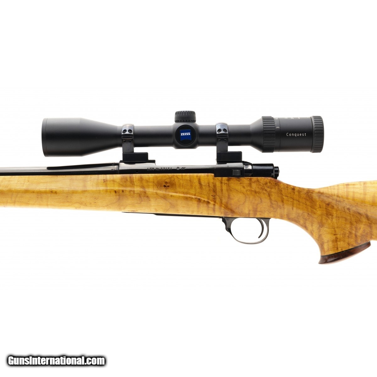 Bolt action deer rifle with beautiful custom stock. Stock is nicely figured with rosewood pistol grip cap, forend tip and butt plate. Comes with a Zeiss 3-9X scope. Very good overall condition.