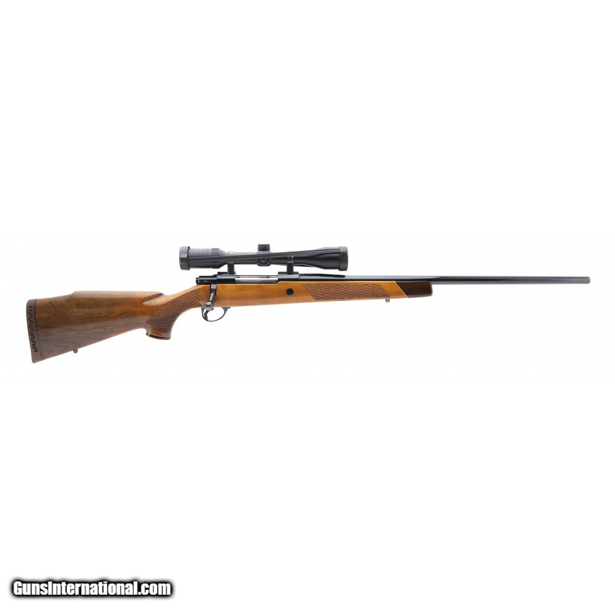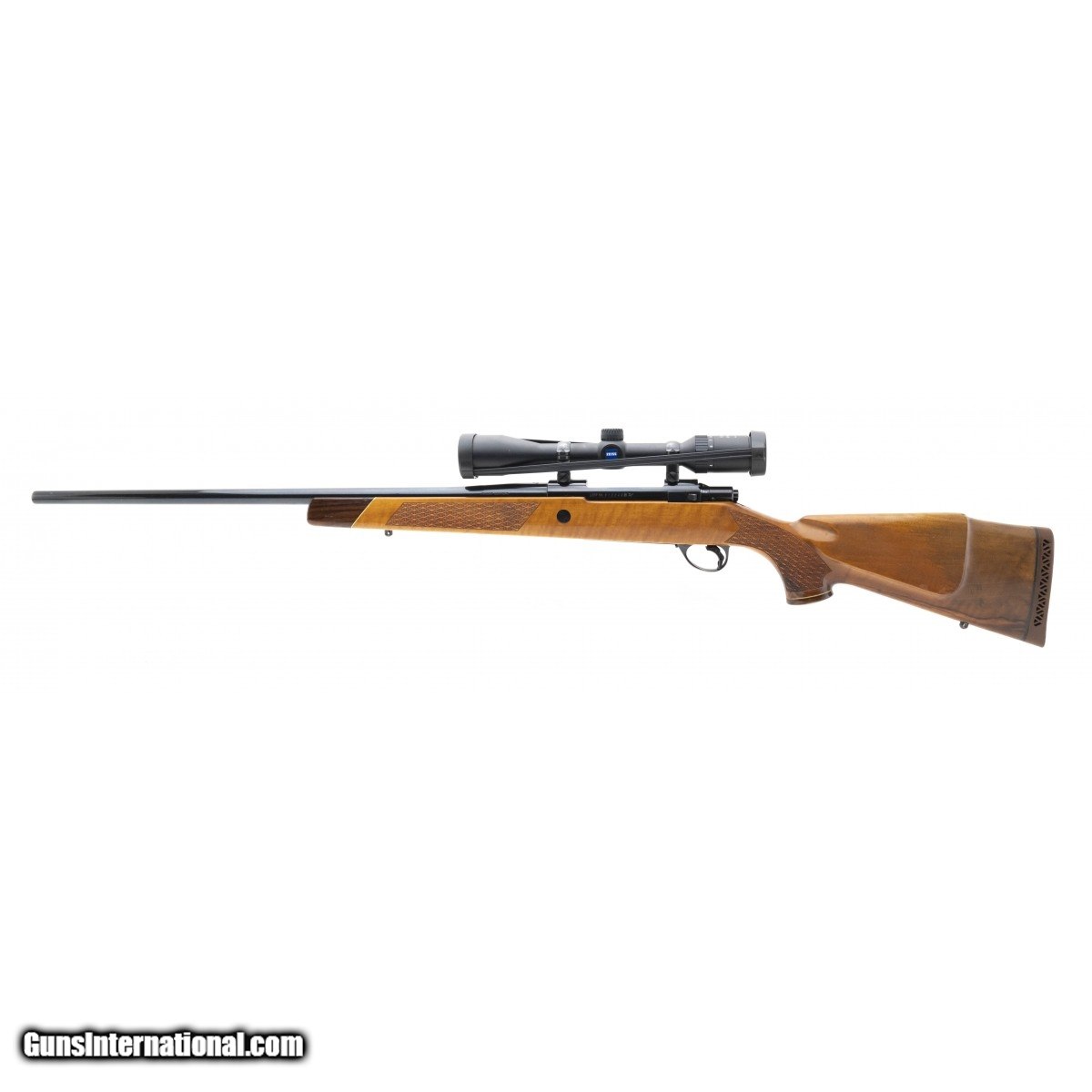 Description: " Early model Deluxe rifle. The metal is excellent, the stock shows marks and wear. Has a Zeiss 3x9 scope. Overall very good condition. SOLD |