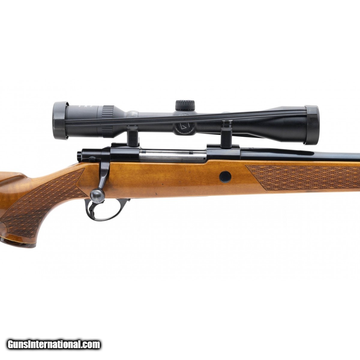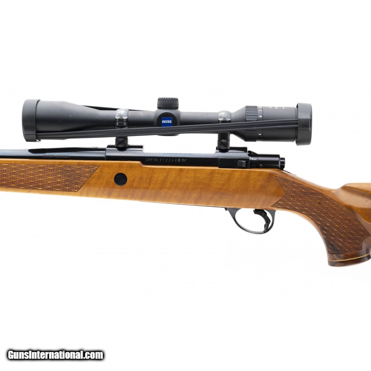 Early model Deluxe rifle. The metal is excellent, the stock shows marks and wear. Has a Zeiss 3x9 scope. Overall very good condition.