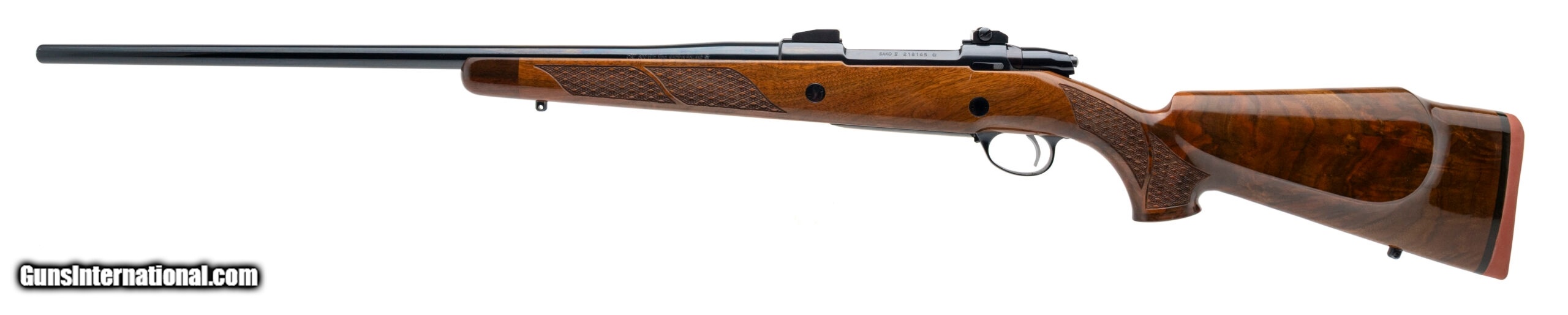 Description: "SN: 218165 made in Finland circa 1990's. Deluxe bolt action hunting rifle chambered in 300 Win Mag with a 24"" round barrel with scope ring bases installed, engraved bottom metal and high polish blued finish in a high gloss checkered walnut monte-carlo stock. Stock features 2 cross bolt recoil lugs, skip line checkering, right hand palm swell, rosewood forend tip and grip cap with Sako medallion inlaid and original Sako red rubber recoil pad. Some light handling marks but overall in very good condition with an excellent bore. Price: $1,995.00 Contact Seller |