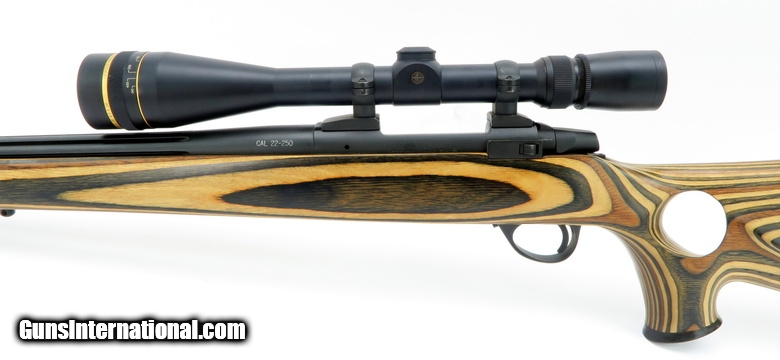 Description: Sako A II .22-250 caliber rifle. Custom varmint rifle built on Sako action. Has a 22” fluted heavy barrel, laminated thumbhole stock and Leupold 6.5x20 scope. Excellent condition.