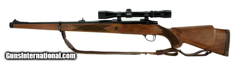 Description: Sako AIII 7mm Rem Mag caliber rifle. Full stock Mannlicher carbine with Redfield 3x9 scope.