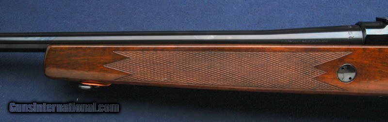 Description: This one is really a stunner, literally makes me wish I was right handed. Circa 1967 Sako Finnwolf VL63, caliber .308, in mint, stunning, unfired condition. Including a very rare factory peepsight. No box or papers, what you see is what you get. Superb quality and finish. 22 1/2" barrel, mint, bright bore, smooth action and a great trigger. Likely the highest quality factory standard lever action rifle ever made. Virtually a piece of art. Don't know how anyone would take this out to shoot, there has to be some level of pure pride of ownership here. Up to you of course, as you can see, the paper wafers are still intact on the sling swivels. The wood is a lovely dark straight grain, untouched since production. If these Finnwolfs float your boat, this one is an incredible example. In order to protect your investment, all long guns over $500 must be shipped in a hard case. Minimum shipping at this level is $55 and includes the hard case. Shipping cost could increase depending on value or weight of the firearm. For long guns less than $500, we still recommend the purchase of a hard case, again to protect your investment. These numbers are for shipping to the lower 48. There is also a 3% surcharge for customers using a credit card on internet sales. Thank you! SOLD Rifle Caliber: .308 Winchester |