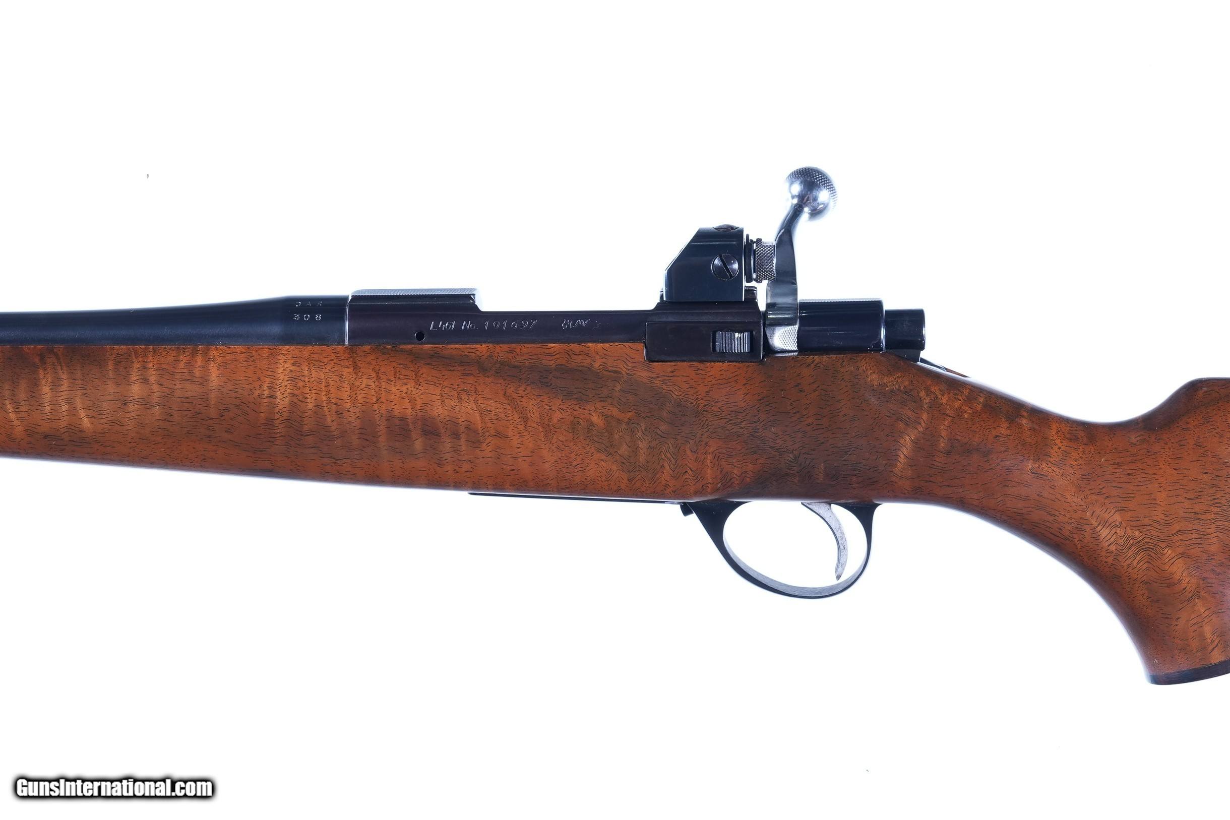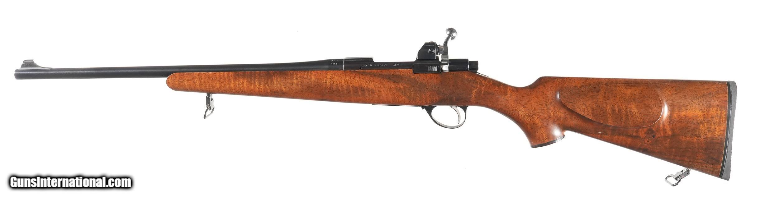 Description: Custom assembled lightweight Sako L461 action with 187" tapered round bbl, chambered for .308 Winchester and mounted with finely figured walnut stock with cheek piece 14" LOP 5 Lbs 6 oz, Mounted with Sako rear peep sight. Condition, Excellent with little use bright bore and mechanically excellent. • Free Shipping, No Credit Card Fees. • Lay-a-way available for this firearm. • 1/3 Down, a 1/3 in 30 Days, 1/3 in 60 Days. SOLD Manufacturer: Sako Model: L461 Serial Number: 101697 Barrel Length: 18 |