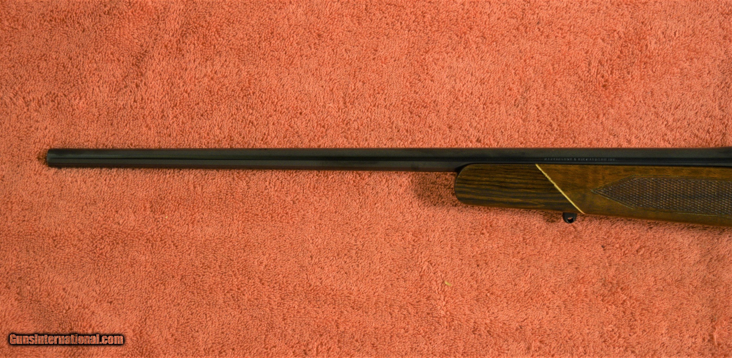 Description: SOLD TO KIRK H&R 317. SN 112723 Built early 70s. Up for sale is a very nice compact H&R Model 317 built on the short Sako Vixen action. This beautiful little rifle is chambered in the popular .223 Rem. cartridge. The rifle carries a light weight 20" barrel with twist rate of 1 - 12" . The rifle weighs 6 lbs. This Sako action has the intregal scope mounts built into the receiver. The rifle is in excellent 99% condition with no cracks or defects. Please add 45.00 freight and insurance. SOLD Curio/Relic: Yes |