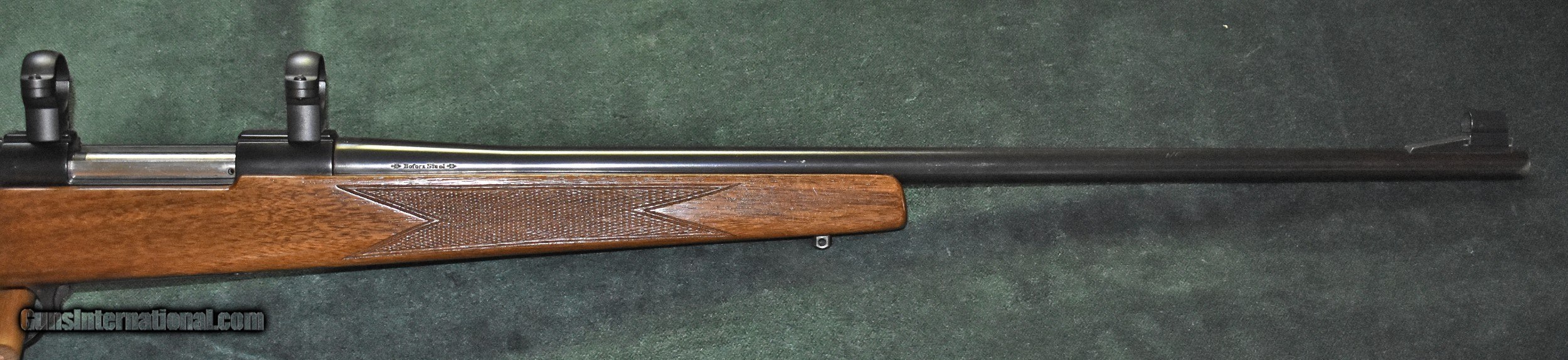 Description: Sako Forester L579 in 243 Win.Built in 1964,this rifle is in mint all original condition.It retains 100% of the original blue and wood finish.It may have been fired,but it shows absolutely no wear at all.The 23" Bofors steel barrel has a mint bore and retains the original sight hood.The rifle comes with 1" medium height rings.C&R eligible. SOLD Curio/Relic: Yes Rifle Caliber: .243 Winchester Manufacturer: Sako Model: L579 Serial Number: 39544 Barrel Length: 24 Condition: mint Metal Condition: mint Wood Condition: mint Bore Condition: mint Barrel Type: Bofors Steel Action: bolt Manufacture Date: 1961 |