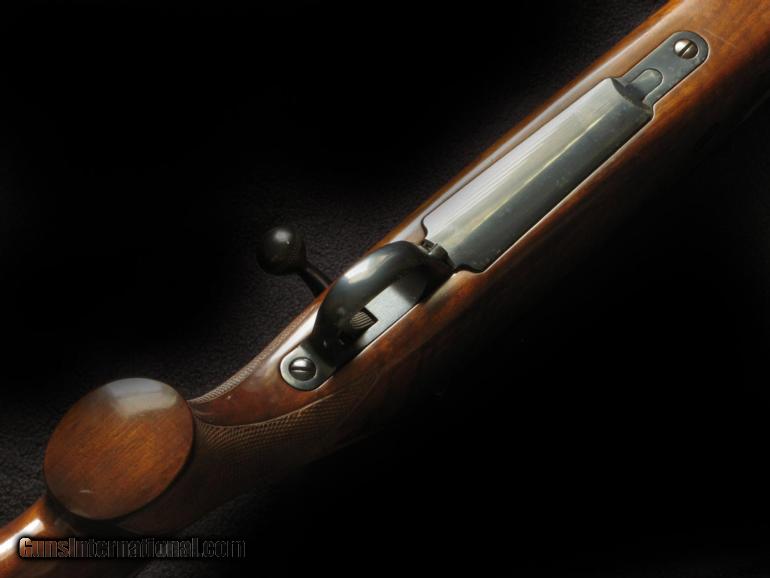 Description: Firearms Intl import, pre Garcia gun with 3rd locking lug, 24" heavy sporter bbl, excellent wood, orig Sako pad heel starting to go. Excl bore. Gun was put away wet, resulting in spotting on barrel w microscopic pitting, action and bottom metal mostly unblemished. Good shooter, classic rifle. SOLD |