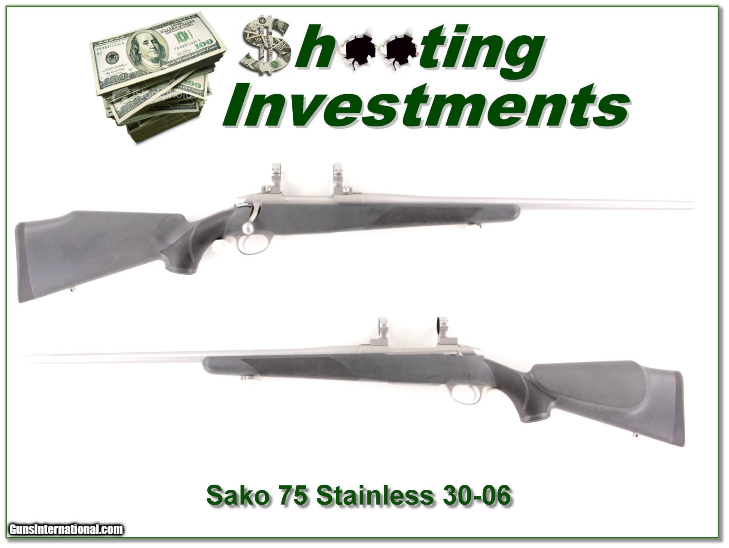 Description: This is an excellent condition Sako 75 Stainless in 30-06 with 24in barrel. It comes with factory Optilock bases and 30mm rings. It will make a high-end hunting gun and these Sako’s are known for superior accuracy! I am selling this one on consignment and as such lay-a-way can’t be used. It does of course have the standard 3-day inspection. Shipping with insurance is $39. Please email me with any questions or larger pictures. (Consign your quality firearms with Shooting Investments for only 12%! Let me know if you have any you would like to sell!) 19-0545 Payment: Payment is by Money Order, Cashiers Check or Personal Check. I can now also accept Credit Cards (MasterCard, Visa, Discover & American Express) with a 3% convenience fee. PayPal can be used for some items but never for firearms. Shipping: The shipping charge will be listed in each description. It is $39 for most firearms. Some heavy guns or those insured for over $2000 will be higher. Shipments to Alaska and Hawaii are higher because air shipment is required. Most firearms are shipped on Tuesday and Thursday and usually in 5 days of receipt of payment. We package all shipments carefully and insure them. Optics are shipped Priority Mail and most other non-firearm shipments are shipped First Class. Returns: Our return policy is simple. If for any reason you are not pleased with your purchase, you may return your item for a full refund of purchase price. Ammunition cannot be returned. It is important to us that you are happy. Guns cannot be fired or dissembled before returning them and they must be returned in the same condition as received. Notification of a return must occur with-in 3 days of receipt at your dealer. Shipping, convenience and dealer fees are not refundable and are the responsibility of the buyer. Lay-a-way: If needed, we offer a 60 day lay-a-way option on most firearms. It is 1/3 now, 1/3 in 30 days and 1/3 in 60 days. Lay-a-way firearm sales are final and if not completed the first payment cannot be returned. Consigning your firearms with Shooting Investments: We will help you get top dollar for your firearms. While most local guns shops charge 20% or more, our fee is only 12% with a minimum of $75. At your local gun shop it might take months to sell. Selling on-line provides instant access to thousands of interested buyers. You won’t find any other on-line dealer willing to sell your firearms for only 12% or listing every gun on 3 separate s. Selling through an House typically costs the seller 15% and the buyer an addition 15% (so 30%) and you have to wait several months to sell and longer to receive funds. If properly priced, we will sell your firearms in a few weeks. Send us an email or give us a call and we’ll explain how easy it is for you to get top dollar. Trading: Trading for use is really just buying your gun to re-sell. If you have a gun you want to trade, please email a picture and we will let you know what we can give or it. You will always get more if we sell it for you on consignment. Help for California Buyers: We are happy to ship to California. It is the buyer’s responsibility to make sure any item you buy is legal in your state. We are also happy to help with your purchase of a firearm from someone other than us. If you see a gun you would like to buy but the seller can’t or won’t ship to California they can ship to use and we’ll then ship it to your California dealer. The cost for this service is only $30 + shipping. Let us know if we can help! SOLD |