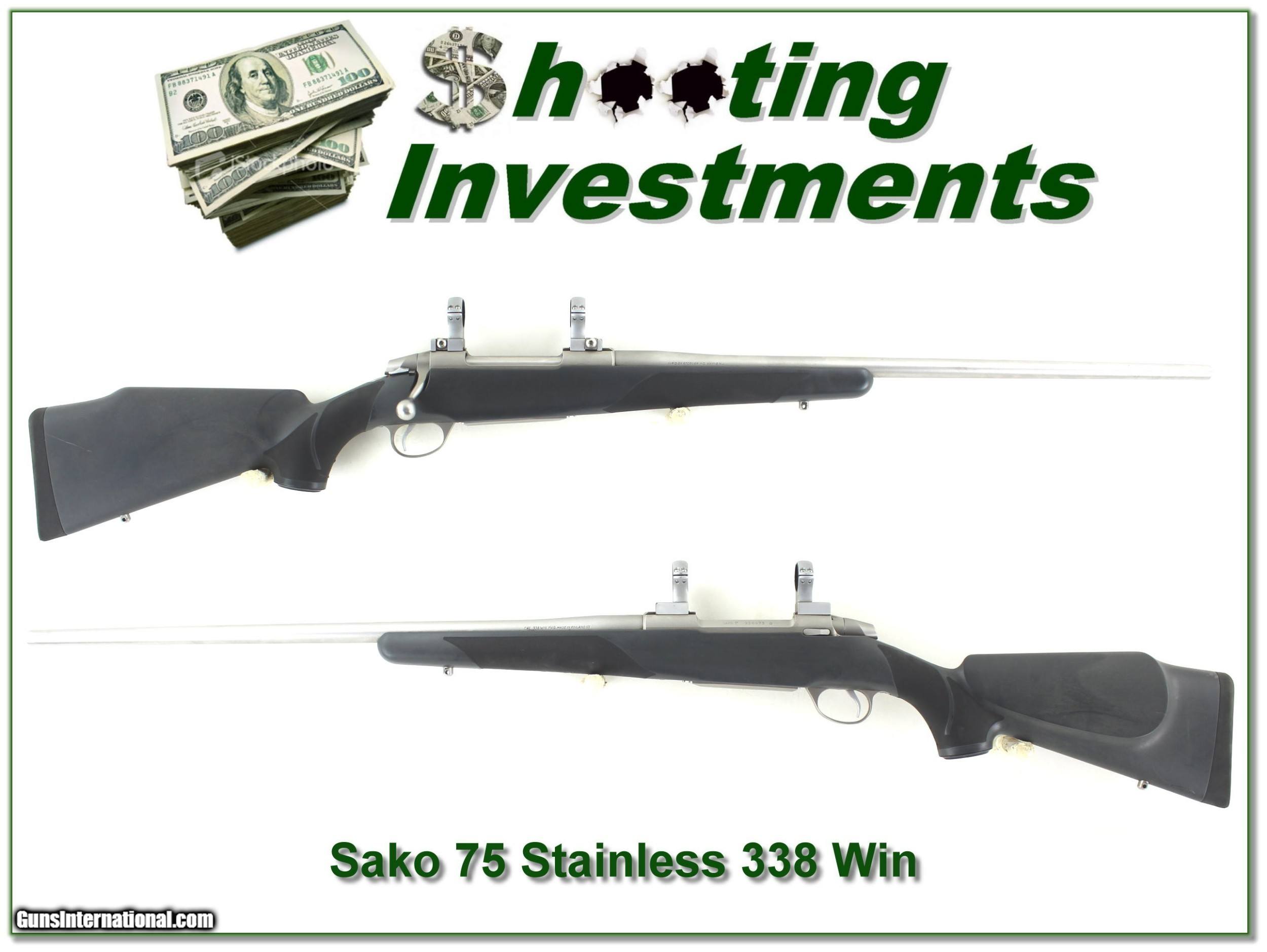 Description: This is an excellent condition Sako 75 in the hard hitting 338 Winchester Magnum. It is an all-weather stainless with 25in barrel. It will make a high-end hunting gun and comes with Sako Opti-lock bases with rings as shown. Shipping with insurance is $39. Please email me with any questions or larger pictures. (Consign your quality firearms with Shooting Investments for only 12%! Let me know if you have any you would like to sell!) 21-1492 Payment: Payment is by Money Order, Cashier’s Check or Personal Check. I can now also accept Credit Cards (MasterCard, Visa, Discover & American Express) with a 3% convenience fee. Shipping: The shipping charge will be listed in each description. It is $39 for most firearms. Some heavy guns or those insured for over $2000 will be higher. Shipments to Alaska and Hawaii are higher because air shipment is required. Most firearms are shipped on Tuesday and Thursday and usually in 5 days of receipt of payment. We package all shipments carefully and insure them. Optics are shipped Priority Mail and most other non-firearm shipments are shipped First Class. Returns: Our return policy is simple. If for any reason you are not pleased with your purchase, you may return your item for a full refund of purchase price. Ammunition cannot be returned. It is important to us that you are happy. Guns cannot be fired or dissembled before returning them and they must be returned in the same condition as received. Notification of a return must occur within 3 days of receipt at your dealer. Shipping, convenience and dealer fees are not refundable and are the responsibility of the buyer. Lay-a-way: If needed, we offer a 60 day lay-a-way option on most firearms. It is 1/3 now, 1/3 in 30 days and 1/3 in 60 days. Lay-a-way firearm sales are final and cannot be returned. If a lay-a-way is not completed the first payment cannot be refunded. Consigning your firearms with Shooting Investments: We will help you get top dollar for your firearms. While most local guns shops charge 20% or more, our fee is only 12% with a minimum of $75. At your local gun shop it might take months to sell. Selling on-line provides instant access to thousands of interested buyers. You won’t find any other on-line dealer willing to sell your firearms for only 12% or listing every gun on 3 separate s. Selling through an House typically costs the seller 15% and the buyer an addition 15% (so 30%) and you have to wait several months to sell and longer to receive funds. If properly priced, we will sell your firearms within a few weeks. Send us an email or give us a call and we’ll explain how easy it is for you to get top dollar. Trading: Trading for us is really just buying your gun to re-sell. If you have a gun you want to trade, please email a picture and we will let you know what we can give for it. You will always get more if we sell it for you on consignment. Help for California Buyers: We are happy to ship to California. It is the buyer’s responsibility to make sure any item you buy is legal in your state. We are also happy to help with your purchase of a firearm from someone other than us. If you see a gun you would like to buy but the seller can’t or won’t ship to California they can ship to use and we’ll then ship it to your California dealer. The cost for this service is only $30 + shipping. Let us know if we can help! SOLD |