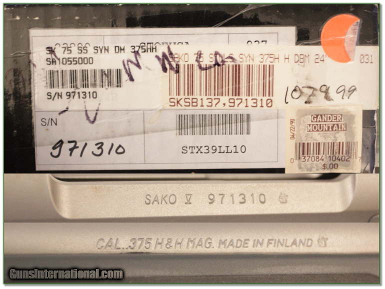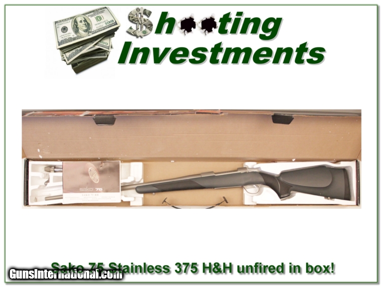 Description: Dangerous game hard weather hunters, this is a Sako Model 75 Stainless in the hard hitting 375 H&H Magnum. It is unfired and perfect and comes in original box with papers. It will make a high end hunting gun for next Alaskan or African hunt! . Shipping and insurance is $30. Please email me with any questions or larger pictures. Please email me with any questions or larger pictures. (I now consign quality firearms only 10%! Let me know if you have any you would like to sell!) [15-0716] Terms & Conditions Payment: Payment is by Money Order, Cashiers Check or Personal Check. I can now also accept MasterCard and Visa with a 3% convenience fee. PayPal can be used for some items but never firearms. Please let us know if you would like to pay via PayPal. Shipping: The shipping charge will be listed in each description. It is $30 for most guns. Some heavy guns or those insured for over $2000 may be higher. Shipments to Alaska and Hawaii are higher because air shipment is required. Most firearms are shipped within 5 days of receipt of payment. We prefer shipping at the beginning of the week to avoid firearms in transit over weekends. We package all shipments carefully and insure them for the full purchase price, rounded up to the next $100. In the unlikely event that damage occurs, it is important that you save all packaging material for the claims process. Optics are shipped Priority Mail and most other non-firearm shipments are shipped First Class. Returns: Our return policy is simple. If for any reason you are not pleased with your purchase, you may return your item for a refund. The only exception is ammunition, it cannot be returned. It is important to us that you are happy. Guns cannot be fired or dissembled before returning them and must be returned in the same condition as received. Notification of a return must occur with-in 3 days of receipt at your dealer. Shipping, convenience and dealer fees are not refundable and are the responsibility of the buyer. Lay-a-way: If needed, we offer a 60 day lay-a-way option on most firearms. It is 1/3 now, 1/3 in 30 days and 1/3 in 60 days. Lay-a-way firearm sales are final. Consigning your firearms with Shooting Investments: We will help you get top dollar for your firearms. While most local guns shops charge 20% or more, our fee is only 10% with a minimum of $50. At your local gun shop it might take months to sell. Selling on-line provides instant access to thousands of interested buyers. You won’t find any other on-line dealer willing to sell your firearms for only 10% or listing every gun on 4 separate s. Selling through an House typically costs 15% and you have to wait several months to sell and longer to receive funds. If properly priced, we will sell your firearms in a week or two. Send us an email or give us a call and we’ll explain how easy it is for you to get top dollar. Trading: We collect guns and usually just trade for guns we want to add to our collections. We often sell guns for others wanting to purchase one of ours. We find this the most fair to both of us. Our Commission is only 10% and we hold the gun you want until yours sells. Please contact us if you want to sell one of yours to buy one of ours. Help for California Buyers: We are happy to ship to California. It is the buyer’s responsibility to make sure any item you buy is legal in your state. We are also happy to help with your purchase of a firearm from someone other than us. If you see a gun you would like to buy but the seller can’t or won’t ship to California we can help. You buy the gun and have it shipped to us. We’ll then ship it to your California dealer. The cost for this service is only $30 + shipping. Let me know if we can help! SOLD |