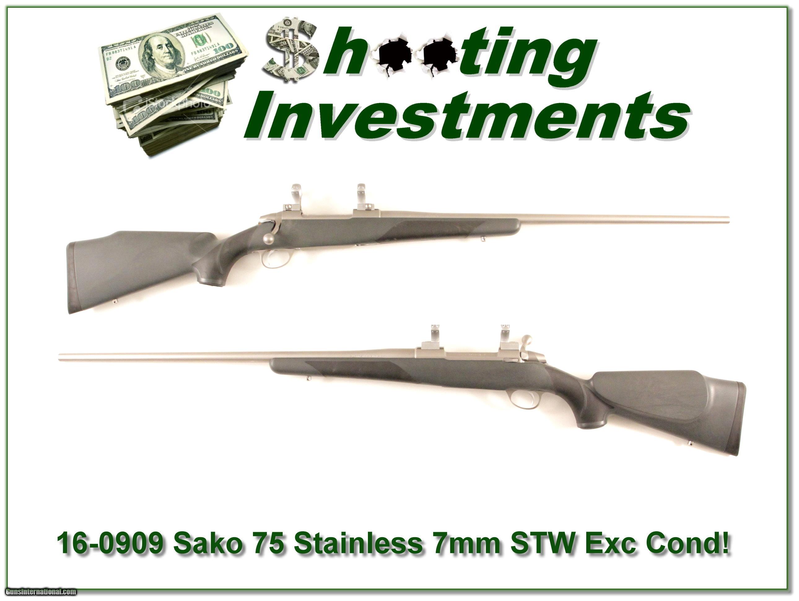 Description: Collectors, shooters and long range hunters, this is a very hard to find Sako 75 3 lug gun in rare 7mm STW. This is a high end rifle in excellent condition. It is clip fed. It will make a very nice big game hunting gun at much less than the cost of new Sako of this quality. Shipping and insurance is $35 or $15 more if you want it shipped in a new Plano hard case. Please email me with any questions or larger pictures. (I now consign quality firearms only 10%! Let me know if you have any you would like to sell!) [16-0909] Payment: Payment is by Money Order, Cashiers Check or Personal Check. I can now also accept MasterCard and Visa with a 3% convenience fee. PayPal can be used for some items but never firearms. Please let us know if you would like to pay via PayPal. Shipping: The shipping charge will be listed in each description. It is $35 for most guns. Some heavy guns or those insured for over $2000 will be higher. Shipments to Alaska and Hawaii are higher because air shipment is required. Most firearms are shipped within 5 days of receipt of payment. We prefer shipping at the beginning of the week to avoid firearms in transit over weekends. We package all shipments carefully and insure them for the full purchase price, rounded up to the next $100. In the unlikely event that damage occurs, it is important that you save all packaging material for the claims process. Optics are shipped Priority Mail and most other non-firearm shipments are shipped First Class. Returns: Our return policy is simple. If for any reason you are not pleased with your purchase, you may return your item for a refund. The only exception is ammunition, it cannot be returned. It is important to us that you are happy. Guns cannot be fired or dissembled before returning them and must be returned in the same condition as received. Notification of a return must occur with-in 3 days of receipt at your dealer. Shipping, convenience and dealer fees are not refundable and are the responsibility of the buyer. Lay-a-way: If needed, we offer a 60 day lay-a-way option on most firearms. It is 1/3 now, 1/3 in 30 days and 1/3 in 60 days. Lay-a-way firearm sales are final. Consigning your firearms with Shooting Investments: We will help you get top dollar for your firearms. While most local guns shops charge 20% or more, our fee is only 10% with a minimum of $50. At your local gun shop it might take months to sell. Selling on-line provides instant access to thousands of interested buyers. You won’t find any other on-line dealer willing to sell your firearms for only 10% or listing every gun on 4 separate s. Selling through an House typically costs the seller 15% and the buyer an addition 15% (so 30%) and you have to wait several months to sell and longer to receive funds. If properly priced, we will sell your firearms in a week or two. Send us an email or give us a call and we’ll explain how easy it is for you to get top dollar. Trading: We collect guns and usually just trade for guns we want to add to our collections. We often sell guns for others wanting to purchase one of ours. We find this the most fair to both of us. Our Commission is only 10% and we hold the gun you want until yours sells. Please contact us if you want to sell one of yours to buy one of ours. Help for California Buyers: We are happy to ship to California. It is the buyer’s responsibility to make sure any item you buy is legal in your state. We are also happy to help with your purchase of a firearm from someone other than us. If you see a gun you would like to buy but the seller can’t or won’t ship to California we can help. You buy the gun and have it shipped to us. We’ll then ship it to your California dealer. The cost for this service is only $30 + shipping. Let me know if we can help! SOLD |