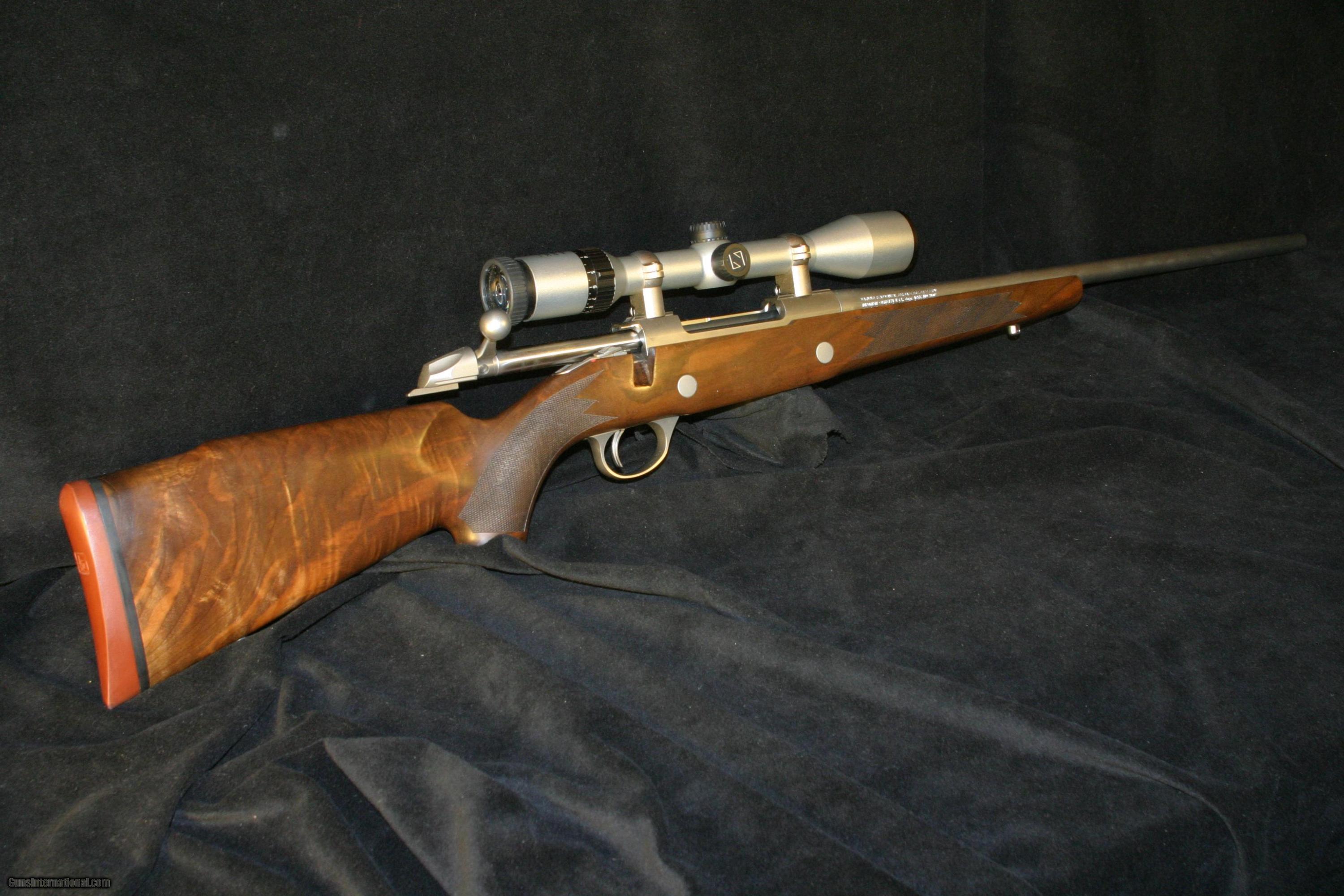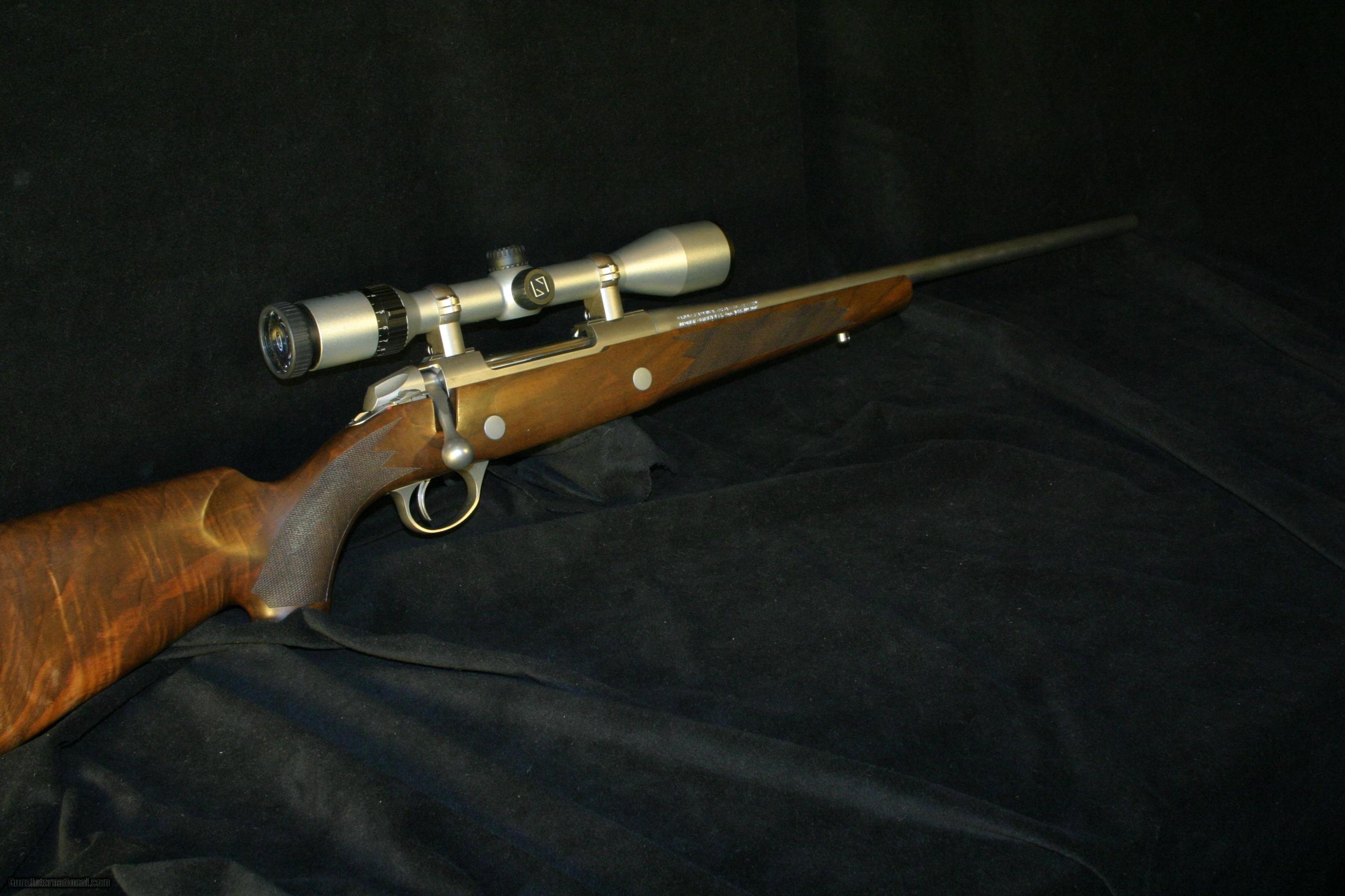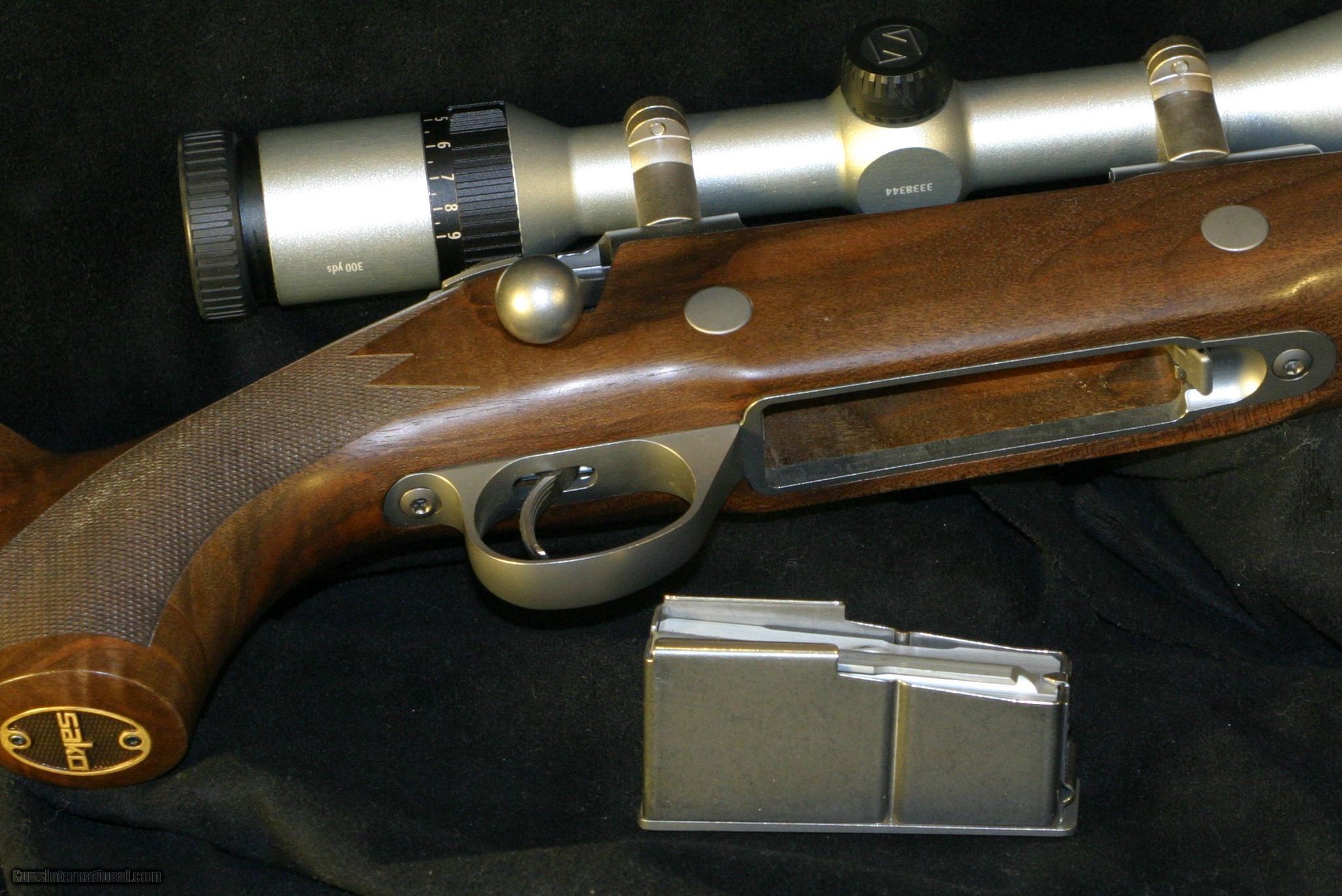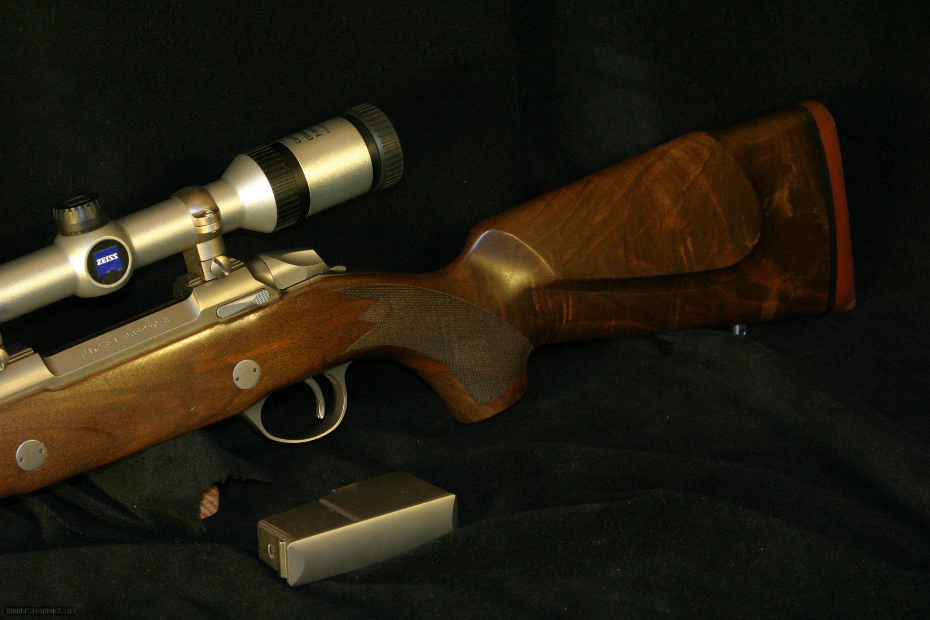 Description: Sako Model 85 Hunter Stainless in 6.5x55mm Swedish-- Limited edition. This rifle features a high grade walnut stock with stainless action and barrel. It is equipped with an adjustable single stage trigger, integrated tapered scope mount rail with a Zeiss 3-9x and a detachable box magazine. This is a classic design with contemporary highlights. Like new condition and no waiting! SOLD |