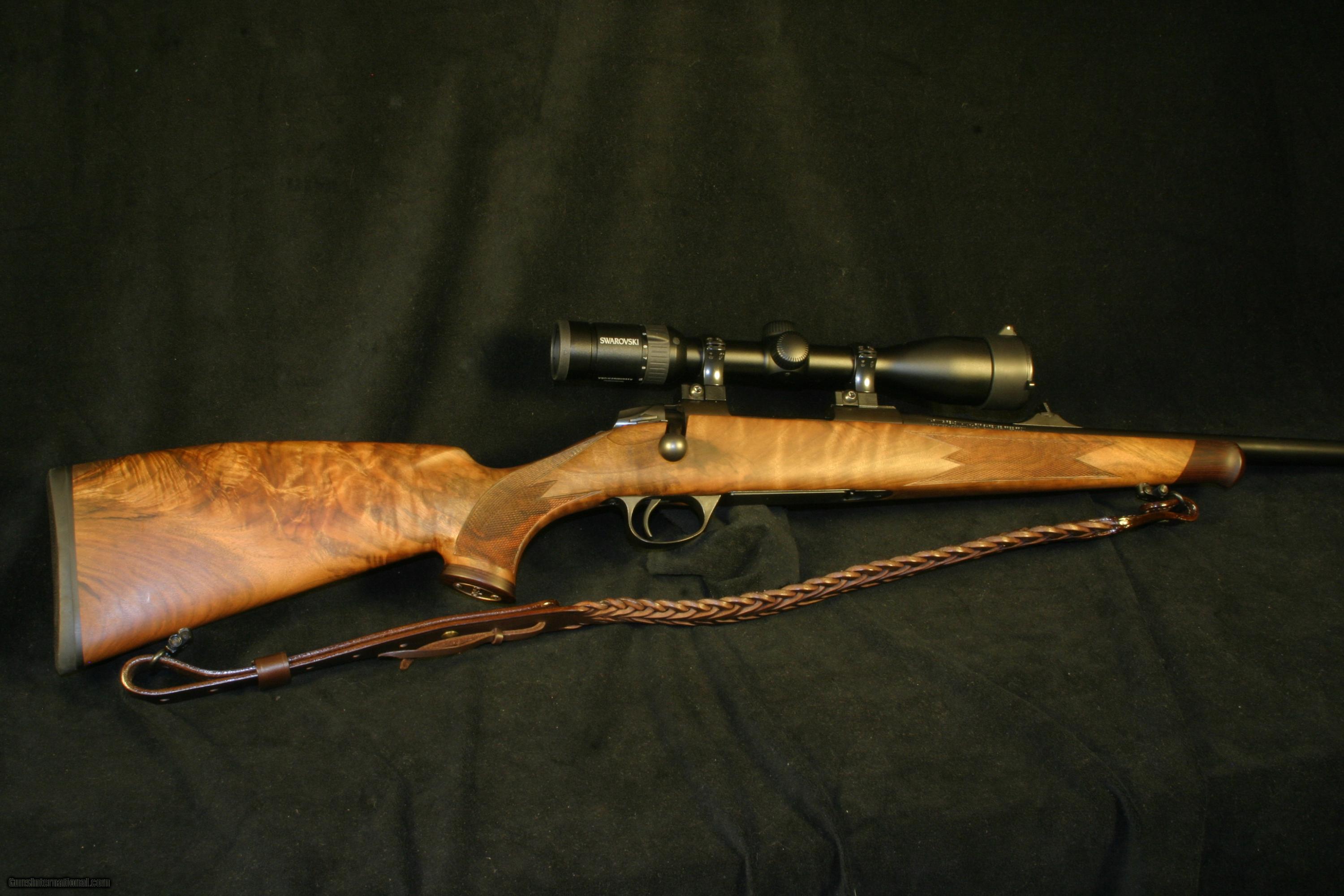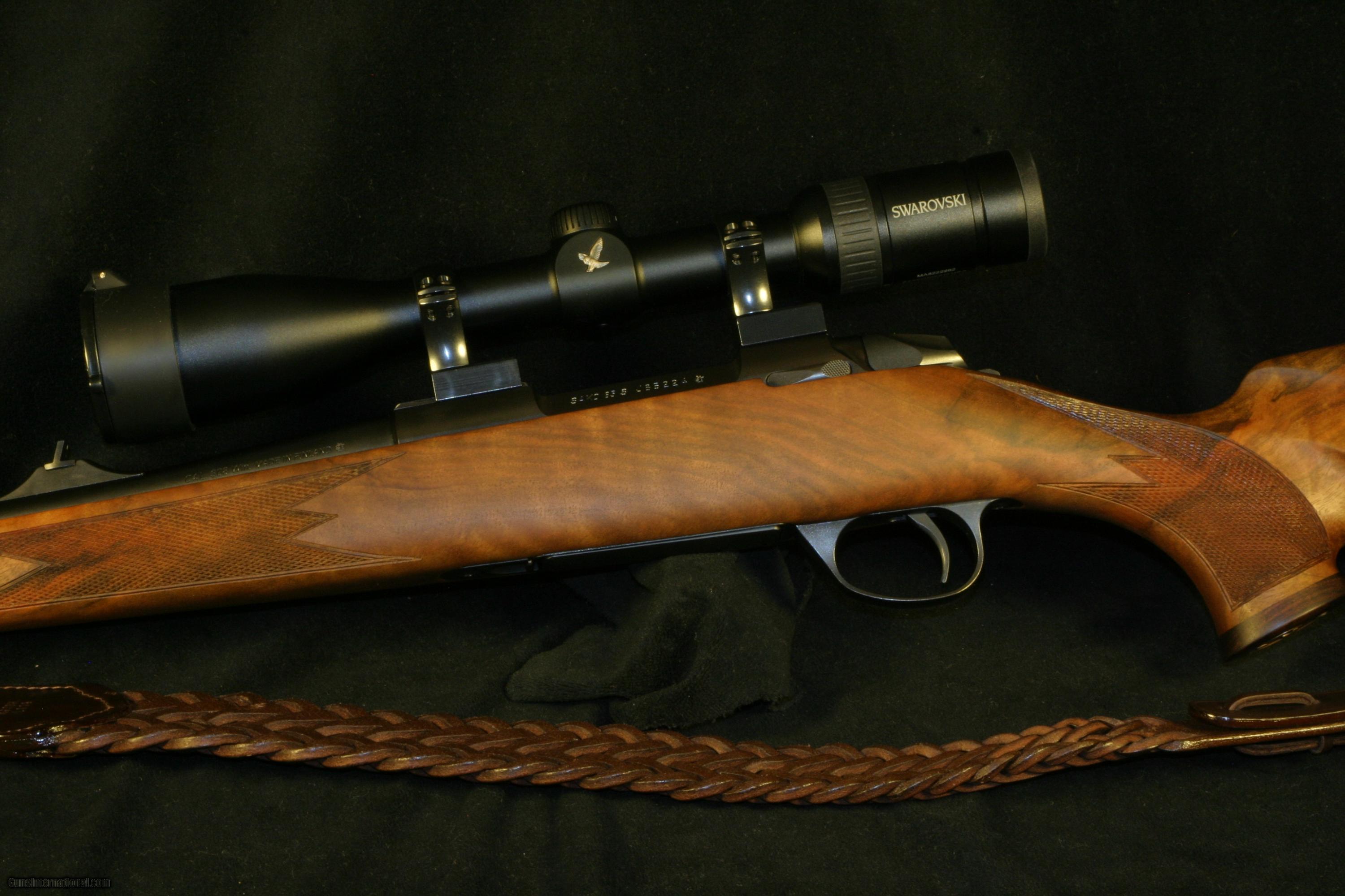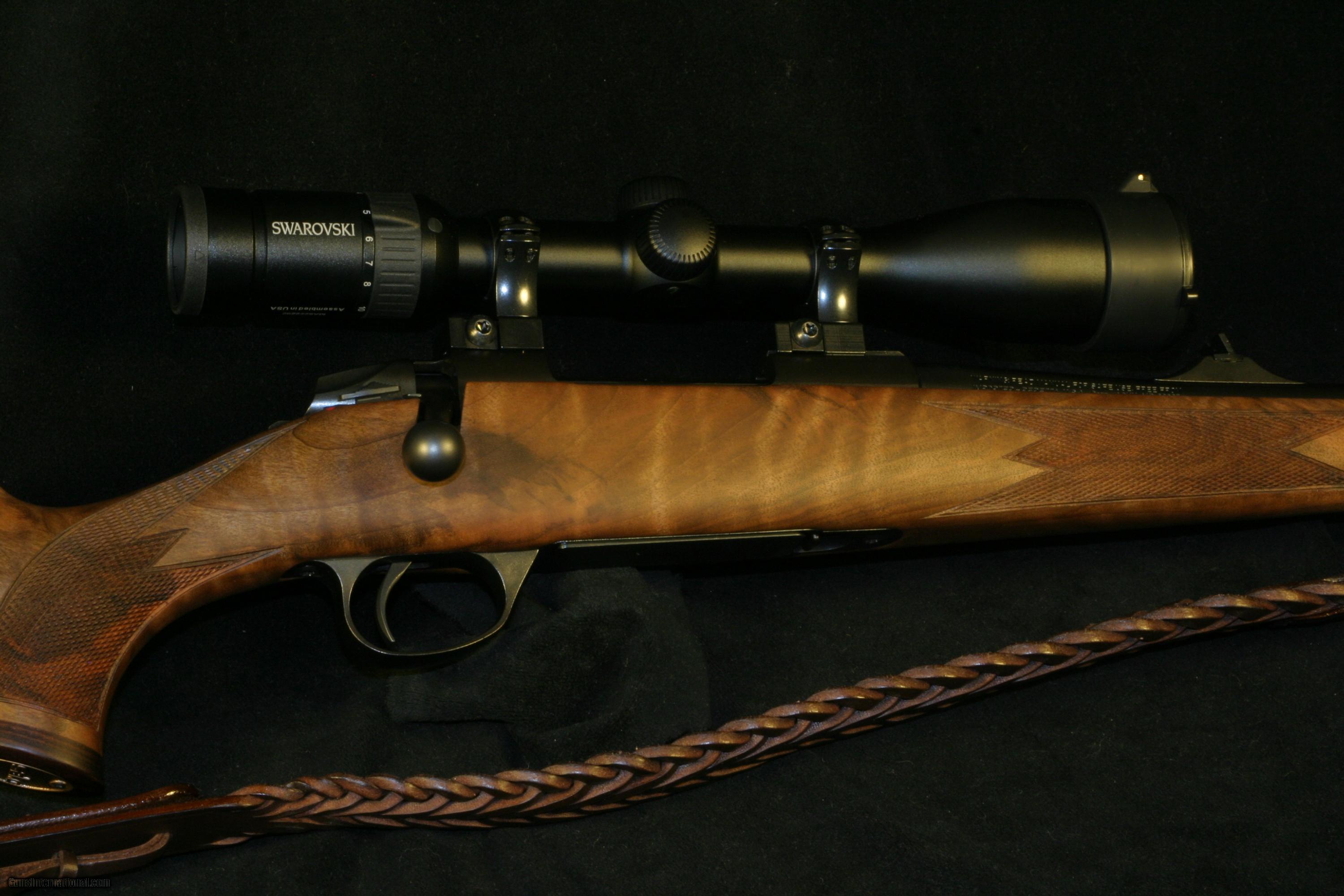 Description: As new, Demo with Swarovski 3-10x42. These are hard to get in the US. It's here now and ready for this season! 22" barrel with iron sights. 308 Win Look at that wood! SOLD |