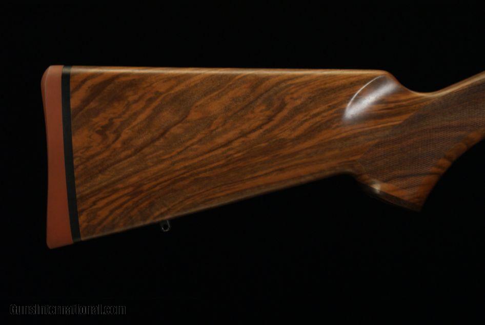 Description: Sako 85 Classic, .300 Win. Mag., 24 3/8" cold-hammer forged and free floating barrel with a tuned 11" twist rate, 13 7/8" LOP over a pad, 8 lbs. 3 oz., Sako 3-locking lug action with claw extraction, integral scope ring mounts on action top, adjustable trigger from 2-4 lbs. of pull, double recoil cross bolts, nicely figured European walnut stock with rosewood grip cap and forend tip, oil finished classic straight-comb stock with swelled palm grip and cheekpiece, sling swivels, two position rocker safety. New and in stock. SOLD |