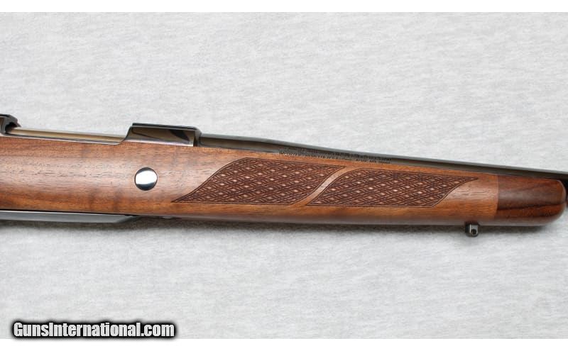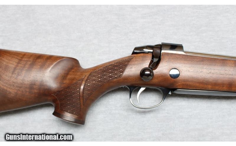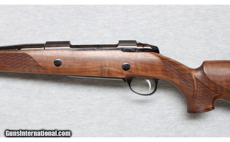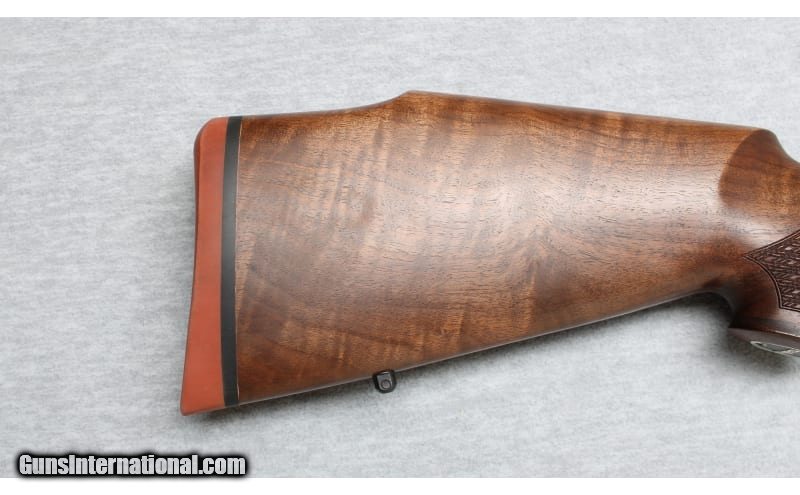 Description: Sako 85 Deluxe chambered in .338 Winchester Magnum. This beautiful bolt action rifle has a highly polished deep black finish with a fully grained selected oil-finished high-grade walnut stock with traditional checkering pattern and red recoil pad. It has a fixed magazine with hinged, polished floorplate. It has a two-position safety and a red cocked indicator. The .338 Winchester Magnum was intended for larger North American big-game species and has found use as for the hunting of thin-skinned African plains-game species. .338 Winchester Magnum SOLD Metal Condition: Excellent Wood Condition: Excellent Bore Condition: Bright Barrels: 25 Inches Triggers: Factory Stock Dimensions: LOP 14 1/4 Inches Fore End: Checkered walnut Butt Pad: Rubber pad Sights: Milled scope bases Item Location: La Vista, NE |