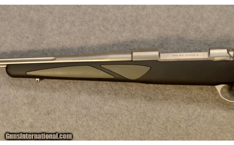 Description: This is a new Sako 85 Finnlight ST in .300 Winchester Magnum with a 24 3/8” fluted stainless barrel. When conditions turn unfavorable, the Sako 85 Finnlight ST refuse to back down. The stainless steel barreled action and internal parts, along with the synthetic stock, perform even in the worst of weather. Because synthetic stocks weigh less than wood, recoil is felt more. To counteract this, the FinSoft rubber recoil-pad system absorbs and dissipates recoil away from the cheek. The reinforced black polymer stock has been treated with soft-touch surface treatments and features delicate gray-patterned grip surfaces. The stock features over molded grips for secure hold. All Sako 85 models have free-floating barrels manufactured by the specialists at Sako. Barrel blanks are drilled, honed, cold-hammer-forged and finished and inspected. The 1-11 inch twist rate is chosen for to optimize accuracy and bullet performance. Barrels have a nonreflecting satiny finish. Stainless steel barrels are reinforced with increased chromium content for strength and weather resistance. Sako's extractor claw is made of durable heat-treated steel. When the bolt brings back the case, it is ejected out of the rifle by the active mechanical ejector fork. The ejector sits in the rear bridge bottom as opposed to the bolt face. The bolt is one piece for first-class durability, the single-stage trigger is adjustable from 2.2 lbs. to 4 lbs., and it has a two-position safety with separate bolt-release button, and has integral tapered scope-mounts. SOLD Caliber Info: .300 Winchester Magnum Metal Condition: New. Wood Condition: New. Bore Condition: New. Barrels: 24 3/8” Fluted. Triggers: Single-stage adjustable trigger. Stock: Reinforced black polymer with textured grip panels. Stock Dimensions: 13 ¾” LOP. Fore End: Reinforced black polymer with textured grip panels. Butt Pad: FinSoft rubber recoil-pad system. Weight: 6 ¾ lbs. Sights: Integral tapered scope-mounts. Extras: New in box. Item Location: Glendale, AZ |