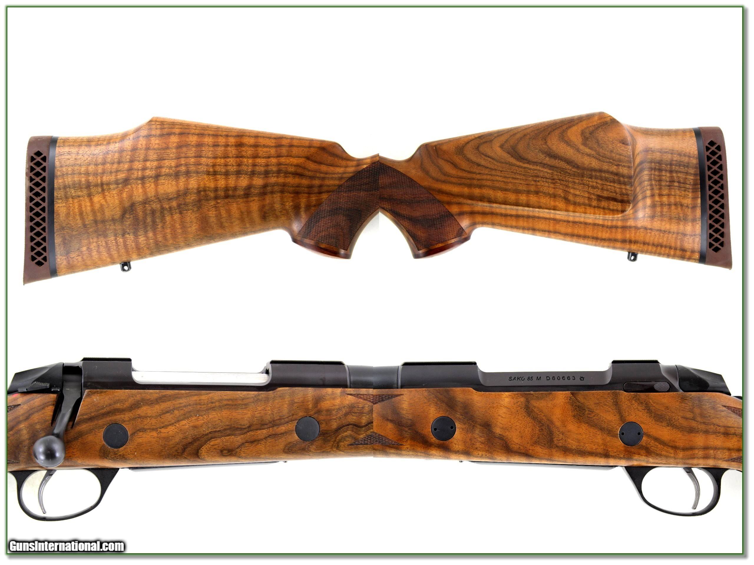 Description: Collectors and hunters, this is about the nicest wood I’ve ever had on ANY rifle. It has fiddleback throughout with horizontal dark streaks. It is amazing in any direction. This is a Sako 85 M in 30-06. It has a 22in barrel and I’m sure only a few rounds fired. I only find a few minor marks under the forearm. I’m not sure you will find another Sako with wood this nice! Shipping and insurance is $49. Please email me with any questions or larger pictures. (Consign your quality firearms with Shooting Investments for only 12%! Let me know if you have any you would like to sell!) 23-0542 Payment: Payment is by Money Order, Cashier’s Check or Personal Check. I can now also accept Credit Cards (MasterCard, Visa, Discover & American Express) with a 3% convenience fee. Shipping: The shipping charge will be listed in each description. It is $49 for most firearms. Some heavy guns or those insured for over $2000 will be higher. Shipments to Alaska and Hawaii are higher because air shipment is required. Most firearms are shipped on Tuesday and Thursday and usually in 5 days of receipt of payment. We package all shipments carefully and insure them. Optics are shipped Priority Mail and most other non-firearm shipments are shipped First Class. Returns: Our return policy is simple. If for any reason you are not pleased with your purchase, you may return your item for a full refund of purchase price. Ammunition cannot be returned. It is important to us that you are happy. Guns cannot be fired or dissembled before returning them and they must be returned in the same condition as received. Notification of a return must occur within 3 days of receipt at your dealer. Shipping, convenience and dealer fees are not refundable and are the responsibility of the buyer. Lay-a-way: If needed, we offer a 60 day lay-a-way option on most firearms. It is 1/3 now, 1/3 in 30 days and 1/3 in 60 days. Lay-a-way firearm sales are final and cannot be returned. If a lay-a-way is not completed the first payment cannot be refunded. Consigning your firearms with Shooting Investments: We will help you get top dollar for your firearms. While most local guns shops charge 20% or more, our fee is only 12% with a minimum of $75. At your local gun shop it might take months to sell. Selling on-line provides instant access to thousands of interested buyers. You won’t find any other on-line dealer willing to sell your firearms for only 12% or listing every gun on 3 separate s. Selling through an House typically costs the seller 15% and the buyer an addition 15% (so 30%) and you have to wait several months to sell and longer to receive funds. If properly priced, we will sell your firearms within a few weeks. Send us an email or give us a call and we’ll explain how easy it is for you to get top dollar. Trading: Trading for us is really just buying your gun to re-sell. If you have a gun you want to trade, please email a picture and we will let you know what we can give for it. You will always get more if we sell it for you on consignment. SOLD |
