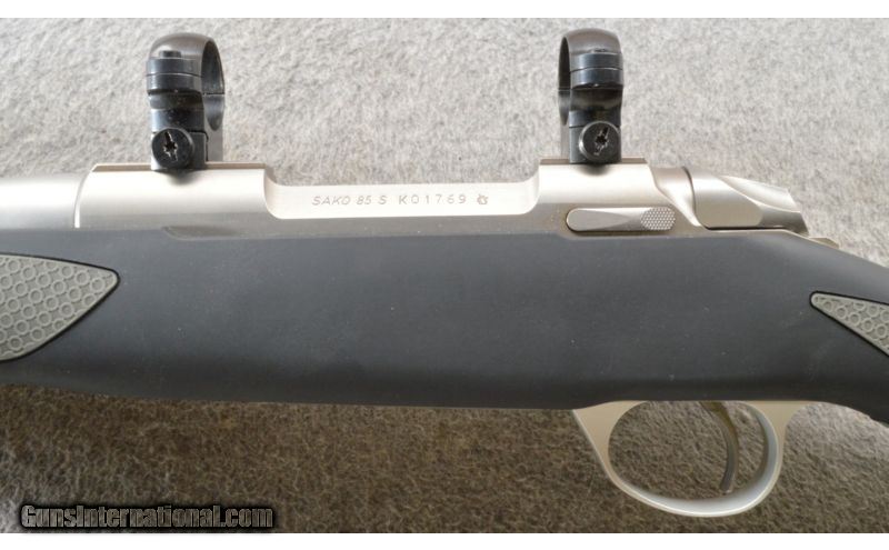 Description: This is a very nice and new looking Sako 85 S Finnlight rifle in .308 Win. The rifle has a 20 inch fluted stainless steel barrel with a light conture. The receiver, trigger guard and detachable mag are also stainless steel. The rifle has a black synthetic stock with gray inserts and comes with a set of Leupold brand Sako rings. The rifle looks to have been fired very little and is ready for the field or range. SOLD Caliber Info: .308 Win. Chambers: Bolt action repeater. Metal Condition: Excellent. Wood Condition: The stock is excellent. Bore Condition: Excellent. Barrels: 20 inch light conture stainless steel fluted. Triggers: Single stainless steel. Stock: Black rubberized synthetic with gray inserts, a grip cap and sling studs.. Stock Dimensions: 13 1/2 inch LOP. Fore End: Matching black synthetic with gray inserts. Butt Pad: Black rubber butt pad. Weight: 6 lbs even as pictured. Sights: Scope rings. Extras: Comes with the rings. Item Location: Owatonna, MN |