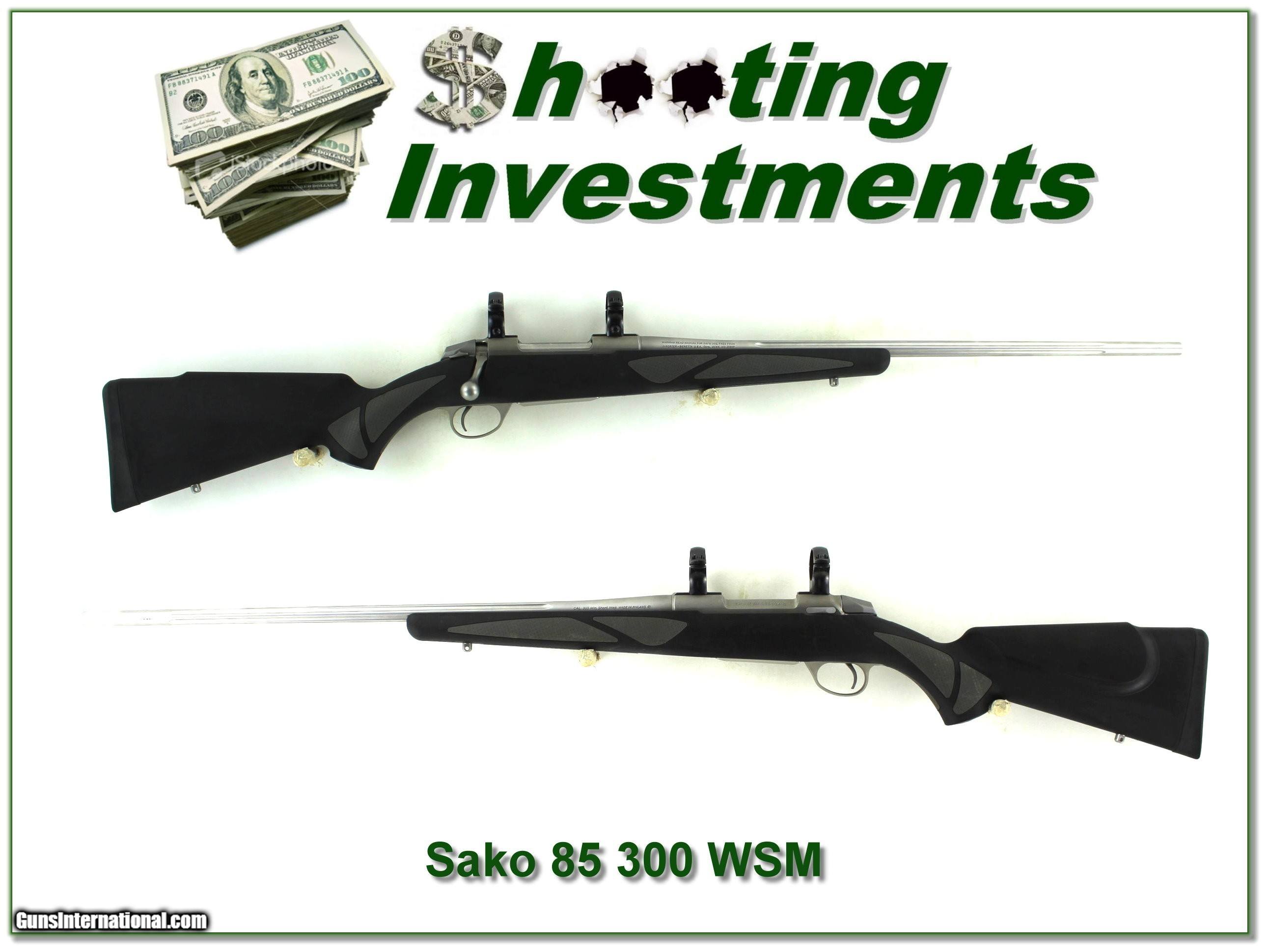Description: All-weather hunters, this is a high-end Sako 85 stainless in the hard hitting 300 WSM. The metal is excellent and from the bolt I’m sure only a few rounds fired. It has a 24.5in fluted barrel and comes with Sako 30mm rings. I only find a few minor marks on the stock. It is a Shooting Investment! Shipping and insurance is $49. Please email me with any questions or larger pictures. (Consign your quality firearms with Shooting Investments for only 12%! Let me know if you have any you would like to sell!) 23-0946 Payment: Payment is by Money Order, Cashier’s Check or Personal Check. I can now also accept Credit Cards (MasterCard, Visa, Discover & American Express) with a 3% convenience fee. Shipping: The shipping charge will be listed in each description. It is $49 for most firearms. Some heavy guns or those insured for over $2000 will be higher. Shipments to Alaska and Hawaii are higher because air shipment is required. Most firearms are shipped on Tuesday and Thursday and usually in 5 days of receipt of payment. We package all shipments carefully and insure them. Optics are shipped Priority Mail and most other non-firearm shipments are shipped First Class. Returns: Our return policy is simple. If for any reason you are not pleased with your purchase, you may return your item for a full refund of purchase price. Ammunition cannot be returned. It is important to us that you are happy. Guns cannot be fired or dissembled before returning them and they must be returned in the same condition as received. Notification of a return must occur within 3 days of receipt at your dealer. Shipping, convenience and dealer fees are not refundable and are the responsibility of the buyer. Lay-a-way: If needed, we offer a 60 day lay-a-way option on most firearms. It is 1/3 now, 1/3 in 30 days and 1/3 in 60 days. Lay-a-way firearm sales are final and cannot be returned. If a lay-a-way is not completed the first payment cannot be refunded. Consigning your firearms with Shooting Investments: We will help you get top dollar for your firearms. While most local guns shops charge 20% or more, our fee is only 12% with a minimum of $75. At your local gun shop it might take months to sell. Selling on-line provides instant access to thousands of interested buyers. You won’t find any other on-line dealer willing to sell your firearms for only 12% or listing every gun on 3 separate s. Selling through an House typically costs the seller 15% and the buyer an addition 15% (so 30%) and you have to wait several months to sell and longer to receive funds. If properly priced, we will sell your firearms within a few weeks. Send us an email or give us a call and we’ll explain how easy it is for you to get top dollar. Trading: Trading for us is really just buying your gun to re-sell. If you have a gun you want to trade, please email a picture and we will let you know what we can give for it. You will always get more if we sell it for you on consignment. SOLD |