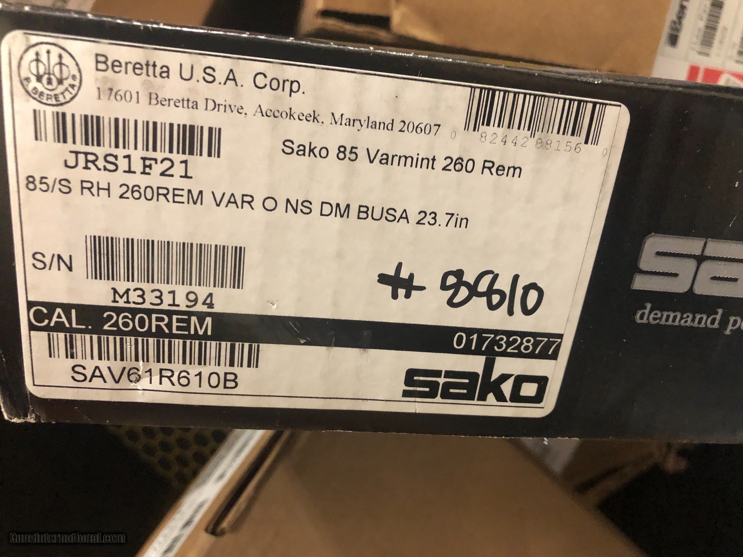Description: This is a Sako 85 VT select series rifle that was purchased about 7 years ago. The rifle caliber is 260 Remington and has a 23.7 length barrel. It has a set of mounts and high 1" rings with it. It has 2 extra magazines with it also. The rifle has never been fired. It has awesome claro walnut stock on it. The rifle was 2200.00 new. Only FSFA aka The Gun Shop! No CA sales! SOLD Rifle Caliber: .260 Remington Manufacturer: Sako Model: 85 Barrel Length: 23.7 |