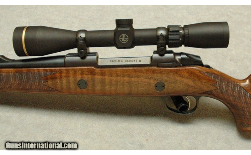 Description: Sako Model 85M Rifle, .30-06. Excellent condition, gloss finish stock with RH cheek rest. Smooth action, crisp trigger pull, Leupold scope installed. .30-06 Springfield SOLD Chambers: Bolt action Metal Condition: Excellent Wood Condition: Stock is excellent Bore Condition: Bright Barrels: 22 Triggers: Factory trigger Stock Dimensions: 14" LOP Fore End: Checkered with contrasting tip Butt Pad: White Line recoil pad Sights: Iron sights and Leupold 3-9x scope Item Location: La Vista, NE |