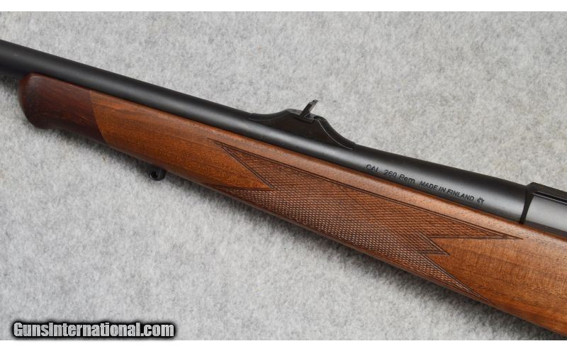 Description: Includes box. SOLD Caliber Info: .260 Rem. Metal Condition: Excellent. Wood Condition: Excellent. Bore Condition: Shiny with strong rifling. Barrels: 22 Stock: Checkered walnut. Fore End: Checkered walnut. Butt Pad: Rubber pad. Weight: 7-lbs., 8-ozs. Sights: Front blade, adjustable rear blade. Item Location: Fort Worth, TX |