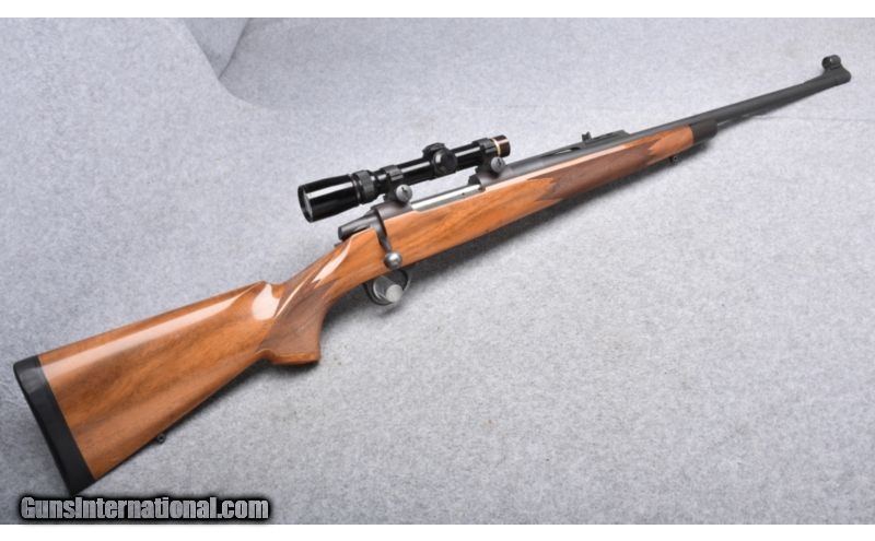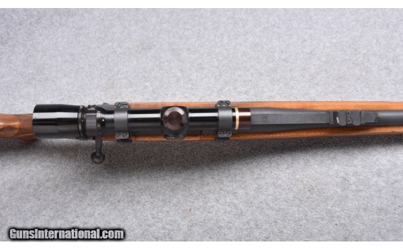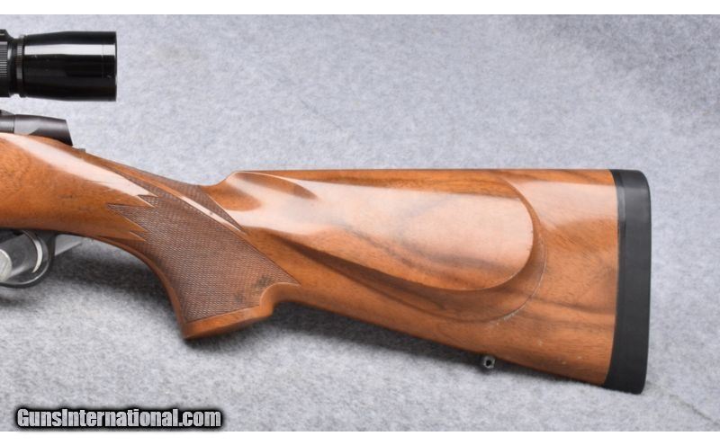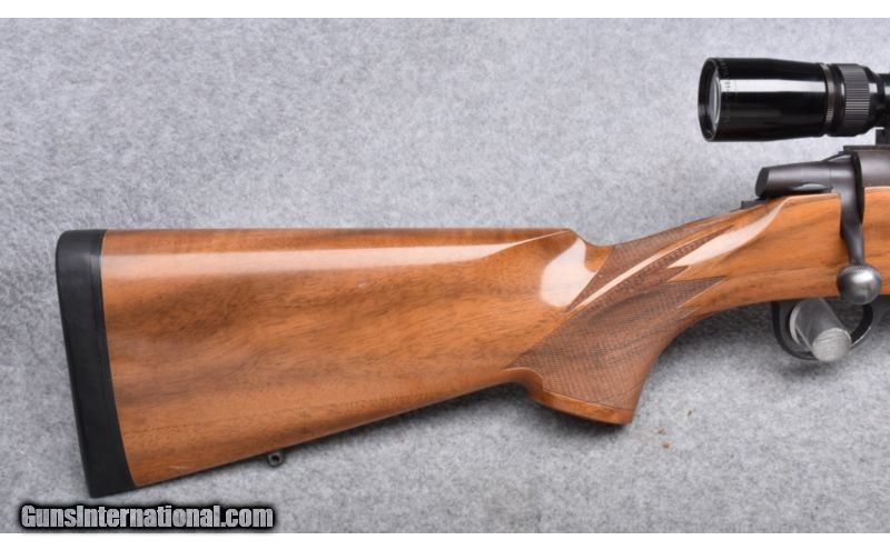 Description: This is a Sako A III rifle in .375 H&H Magnum. This model was produced from 1978-1982. The 24 inch barrel is in Excellent condition with a few handling marks. The bore is bright and shiny. The action is Excellent with light wear on the bolt knob. Bottom metal is Excellent with light wear on the bottom of the trigger guard. The custom stock is checkered walnut with a cheek piece, a Rosewood fore end cap, and sling swivel studs. The condition of the wood is Excellent with a few marks on the toe of the butt on the left side and some depressions on the left side beneath the action and above the trigger guard. Sights are a three leaf folding express sight on a quarter rib with a hooded front blade sight on a barrel band. This rifle comes equipped with a Leupold Vari-X III 1.5-5 scope that is included in the price of the rifle. The scope and mounts will not be removed and the rifle repriced without them. SOLD Caliber Info: .375 H&H Magnum Metal Condition: Excellent Wood Condition: Excellent Bore Condition: Bright and Shiny Barrels: 24 Triggers: Single Ribbed Stock: Custom Checkered Walnut with a Cheek Piece and a Rosewood Fore End Cap Stock Dimensions: LOP 13 1/2 Butt Pad: Pachmayr Old English Pad Sights: Three Leaf Folding Express Rear Sight on a Quarter Rib with a Hooded Front Blade Sight on a Barrel Band and a Leupold Vari-X III 1.5-5 Scope Item Location: Reno, NV |