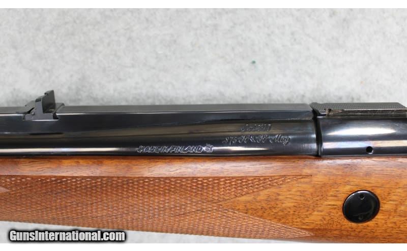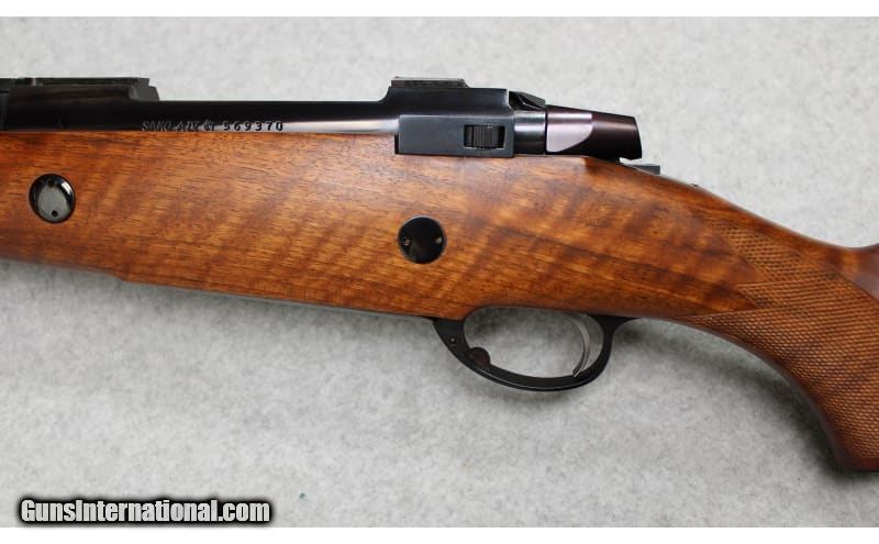 Description: Sako A IV bolt-action rifle chambered in the powerful .375 H&H Magnum cartridge. Features include a Monte Carlo wood stock and 23-inch ported barrel. Comes with flip-up leaf notched rear and hooded ramped beaded front iron sights as well as integrated scope mounting rails. .375 H&H Magnum SOLD Metal Condition: Very Good with Minor Handling Marks Wood Condition: Very Good with Minor Handling Marks Bore Condition: Bright and Clear with Good Rifling Barrels: 23 inch Ported Butt Pad: Rubber Weight: 8 Lbs 3 Oz Sights: Flip Leaf Notched Rear with Hooded Ramped Bead Front Item Location: Fort Worth, TX |