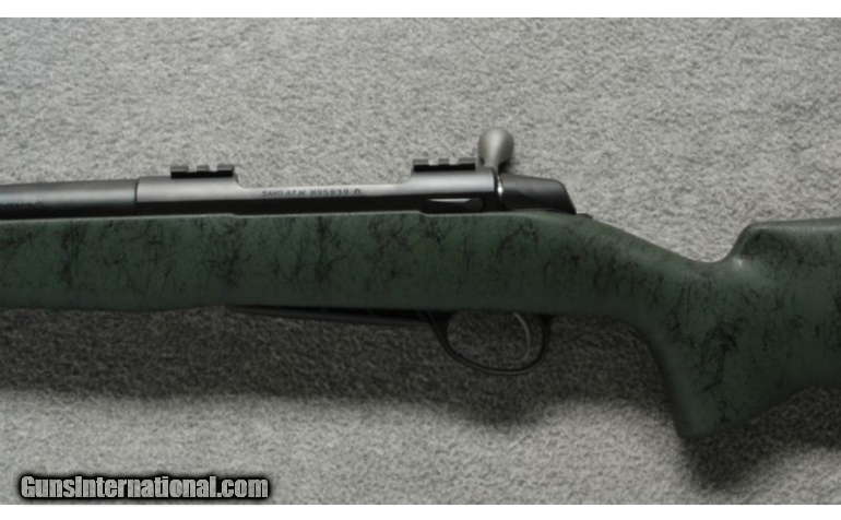 Description: This is a Shot Show Demo Cabela’s Exclusive Sako A7 Long-Range Rifle in 7mm Remington Magnum with a 26 inch fluted barrel. This firearm was used at the 2015 Shot Show Media Day event, and is in excellent condition showing no visible wear. The Cabela's-exclusive Sako A7 Long-Range rifle features an aluminum-bedded Roughtech green fiberglass stock that ensures a rigid chassis for the action, which translates to enhanced accuracy, and is also coated with a rough surface texture for a sure grip in wet weather. The rifle features a matte-blued cold-hammer-forged barrel and action, the fluted barrel reduces weight while efficiently dissipating heat, and sports a target crown to protect the rifling. The receiver has aluminum weaver-style scope bases installed. The bolt has three locking lugs in front and a 70¢ª bolt throw for fast cycling when the action heats up. The single-stage adjustable trigger lets you customize pull between 2 lbs. and 4 lbs. The polymer magazine has an integral steel collar for loading without removal as well as when removed from the rifle. It is also equipped with an advanced high-energy dissipation recoil pad. SOLD Caliber Info: 7mm Remington Magnum Metal Condition: Shows no visible wear. Wood Condition: Shows no visible wear. Bore Condition: Clean with bright lands. Barrels: 26" fluted. Triggers: Single-stage adjustable trigger. Stock: Roughtech green fiberglass stock. Fore End: Roughtech green fiberglass stock. Butt Pad: Sako high-energy dissipation recoil pad. Weight: 9 lbs. Sights: Weaver style bases installed. Extras: Comes with factory box, sling swivels, spacers, and padlock. Item Location: Glendale, AZ |
