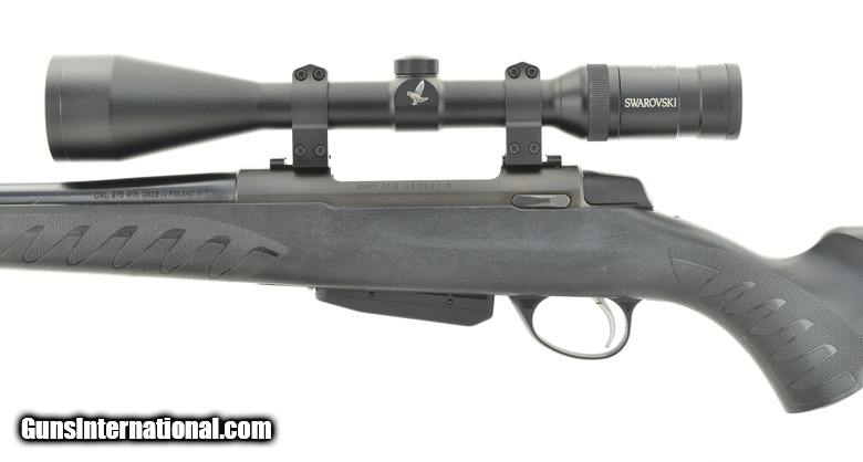 Description: Sako A7M .270 Win caliber rifle. Bolt rifle with detachable magazine and synthetic stock. Has a Swarovski 4-12X scope. Excellent condition.