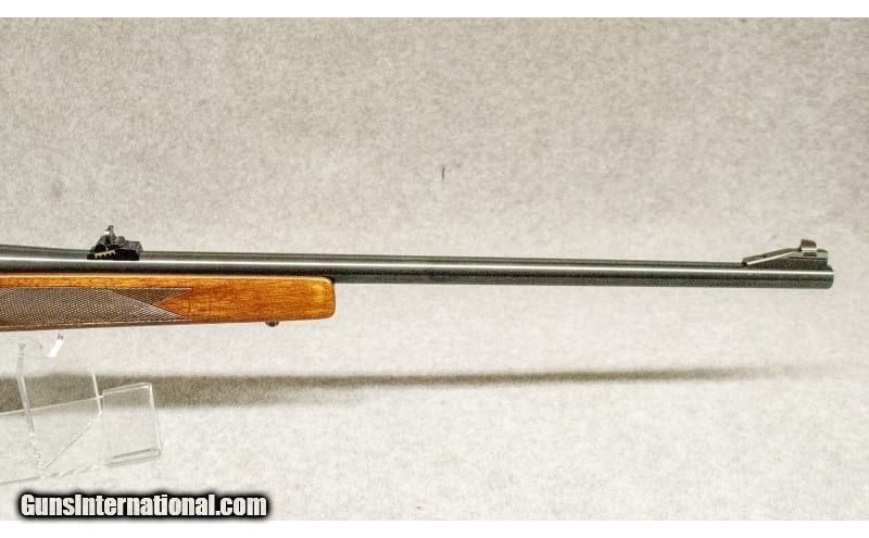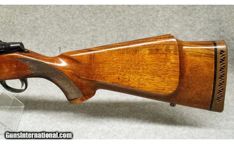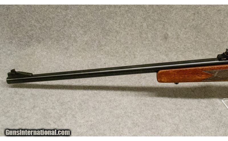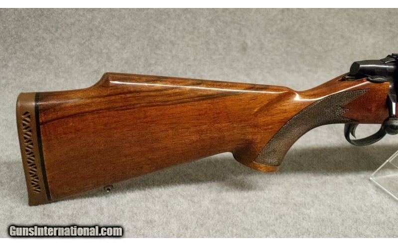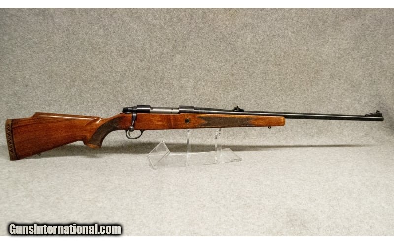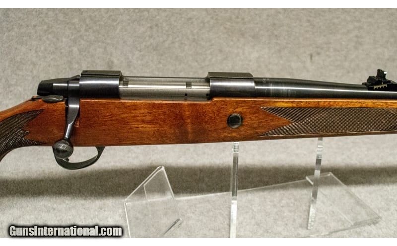 Description: Sako AIII (Long action) rifle chambered in .375 H&H Magnum. Features include a 24" barrel, two-position safety, checkered grip and forearm, Monte-Carlo style stock with raised cheekpiece, Sako rubber buttpad, blued finish, a pair of swing swivels, and adjustable rear sights. Various light scuff marks are present, as well as a small chip in the cheekpiece. The bore is shiny and clean. .375 Magnum SOLD Chambers: .375 Magnum Metal Condition: Excellent Wood Condition: Very Good Bore Condition: Excellent Barrels: 24 Stock Dimensions: 14" LOP Butt Pad: Rubber Sights: Adjustable rear open sights Item Location: Greenville, SC |