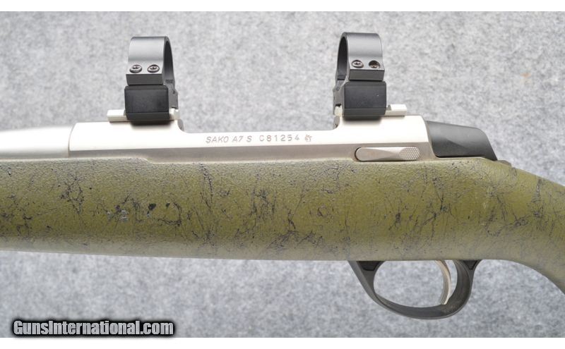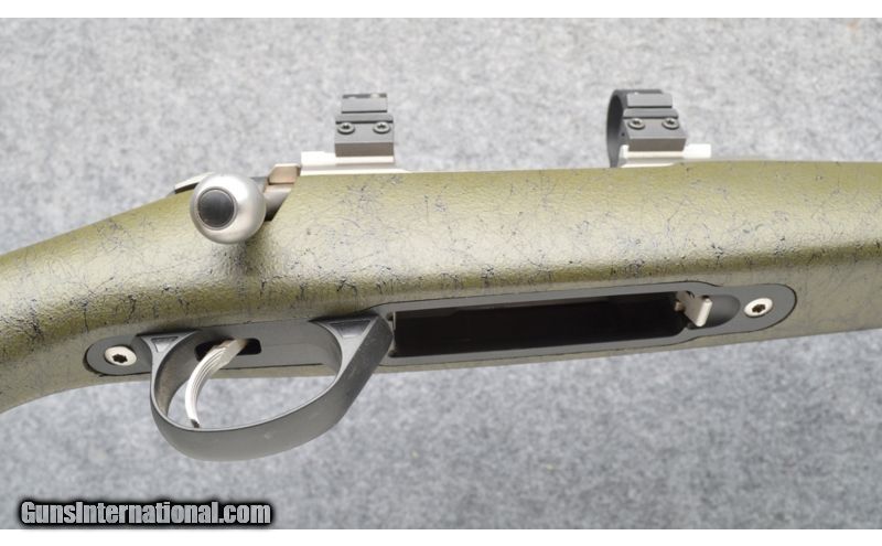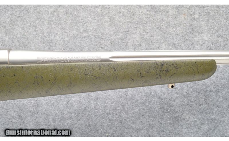 Description: SOLD Caliber Info: .300 WSM Metal Condition: 90% Bore Condition: Bright and shiny with rifling Barrels: 24" Stainless. Fluted Stock: Synthetic green with black splatter Stock Dimensions: LOP 13 5/8 Fore End: Synthetic green with black splatter Butt Pad: Decelerator Weight: 7.4 LB Sights: Loopholes, bases and rings Item Location: Sidney, NE |