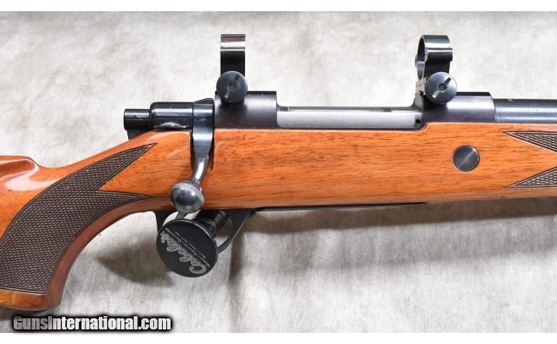 Description: This rifle features nice beech stock with elevated comb and cheekpiece.The action has a Mauser style claw extractor and internal box magazine with hinged floor plate. The bolt number matches the receiver number. .30-06 Springfield SOLD Chambers: 4 rounds Metal Condition: Very good. There is some blue wear along the sharp edges and near the muzzle. Wood Condition: Very good. It has some light handling marks. Bore Condition: Shiny and bright with good rifling. Barrels: 24-1/2 inch Triggers: Factory trigger. Stock Dimensions: 13-1/2 inch LOP. Butt Pad: Ventilated rubber pad. Weight: 8 lb - 6 oz Sights: Hooded post and ladder type notch open sights. Grooved for scope. Item Location: Rogers |