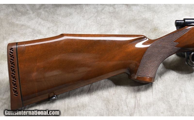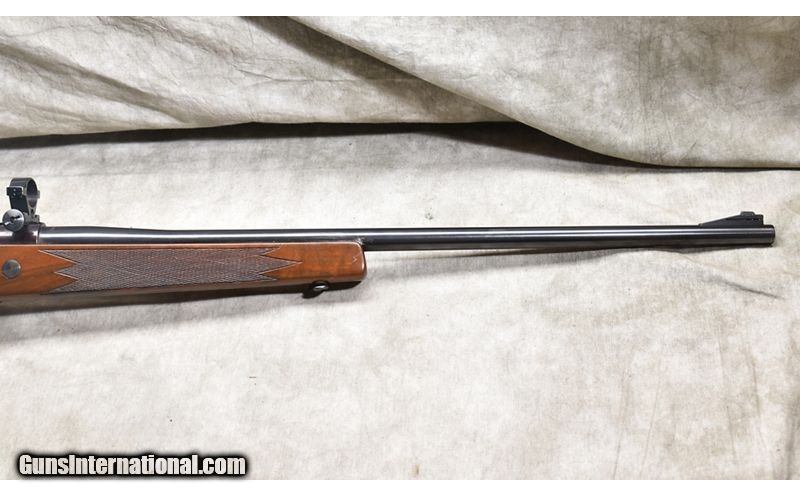 Description: Very nice L61 Finnbear with dark Monte Carlo stock, internal box magazine, and hinged floor plate. .338 Winchester Magnum SOLD Chambers: 3 Metal Condition: Very good. Original sights have been modified to accommodate a scope. Wood Condition: "Very good. A number of small scratches, few having any significance. Bore Condition: Shiny and bright with good sharp rifling. Barrels: 24-inch Triggers: Factory trigger. Stock Dimensions: 13-3/4 inch LOP. Butt Pad: Soft ventilated rubber pad. Weight: 8 lb - 2 oz Sights: Set up for your choice of scope. Item Location: Rogers |