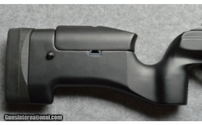 Description: One of the better long range precision rifles available in today's firearms market. SOLD Manufacturer: Modern manufacture. Caliber Info: .338 Lapua Magnum Chambers: Bolt action 5 +1 capacity with one detachable magazine included. Metal Condition: Very good with minor sings of use. Wood Condition: Synthetic pistol grip stock with adjustable cheek piece. Bore Condition: Bright and shiny with sharp edges on the lands. Barrels: 27 inch round barrel, with threaded muzzle. Triggers: Two stage adjustable trigger. Stock: Synthetic pistol grip stock with adjustable cheek piece. Stock Dimensions: 13 3/4 inch LOP. Fore End: Synthetic pistol grip stock with adjustable cheek piece. Butt Pad: Black rubber butt pad. Weight: 10.9 pounds. Sights: No sights, drilled and tapped for a scope base. Item Location: Berlin, MA |