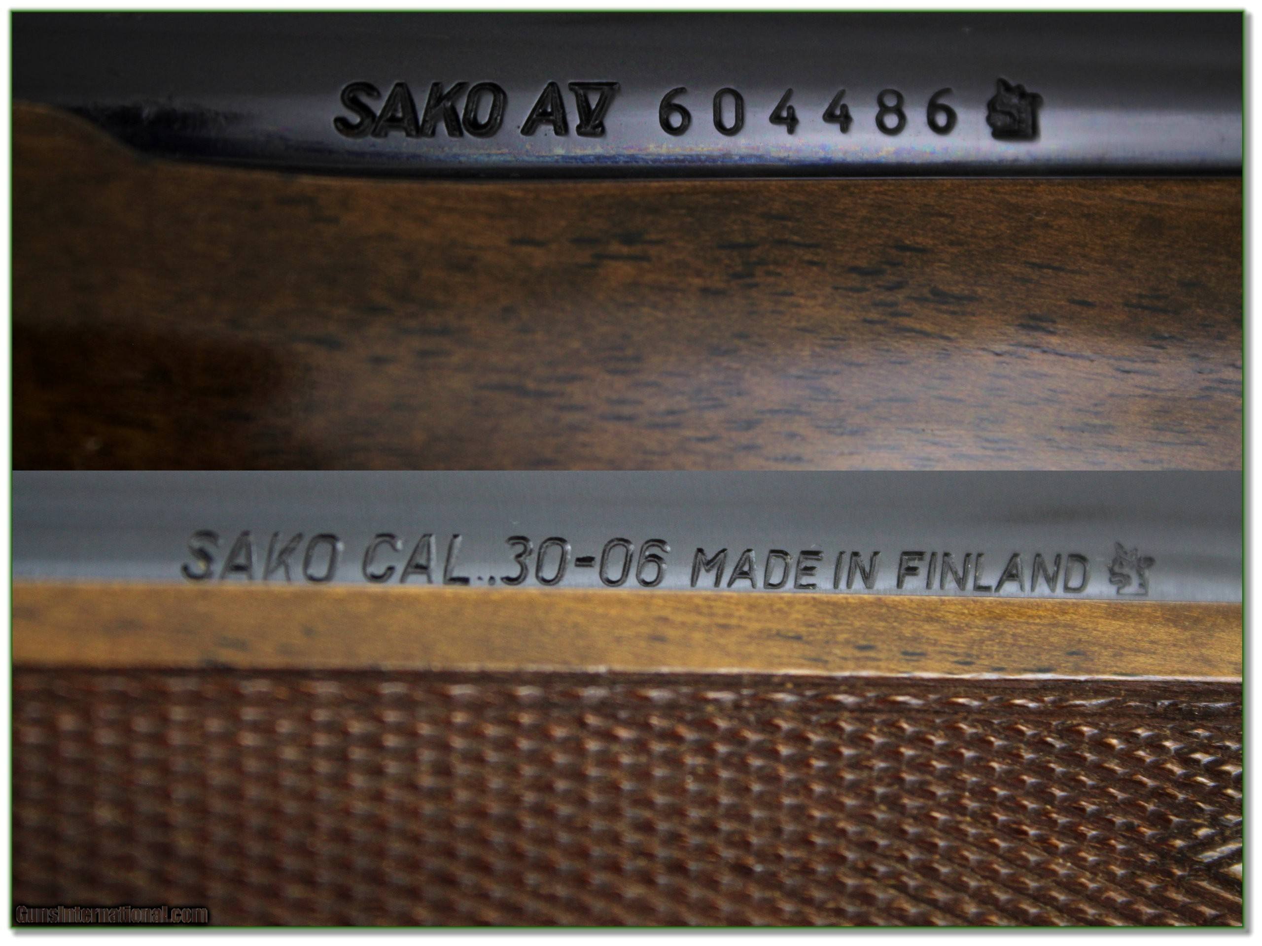 Description: This is a like new Sako AV in 30-06. I believe it’s unfired and it has outstanding wood grain and figure. I find no marks on the metal or the wood. It has a 23in barrel and comes with bases and rings as seen. It will make a high-end hunting gun and is a real Shooting Investment. Shipping and insurance is $49. Please email me with any questions or larger pictures. (Consign your quality firearms with Shooting Investments for only 12%! Let me know if you have any you would like to sell!) 23-0811 Payment: Payment is by Money Order, Cashier’s Check or Personal Check. I can now also accept Credit Cards (MasterCard, Visa, Discover & American Express) with a 3% convenience fee. Shipping: The shipping charge will be listed in each description. It is $49 for most firearms. Some heavy guns or those insured for over $2000 will be higher. Shipments to Alaska and Hawaii are higher because air shipment is required. Most firearms are shipped on Tuesday and Thursday and usually in 5 days of receipt of payment. We package all shipments carefully and insure them. Optics are shipped Priority Mail and most other non-firearm shipments are shipped First Class. Returns: Our return policy is simple. If for any reason you are not pleased with your purchase, you may return your item for a full refund of purchase price. Ammunition cannot be returned. It is important to us that you are happy. Guns cannot be fired or dissembled before returning them and they must be returned in the same condition as received. Notification of a return must occur within 3 days of receipt at your dealer. Shipping, convenience and dealer fees are not refundable and are the responsibility of the buyer. Lay-a-way: If needed, we offer a 60 day lay-a-way option on most firearms. It is 1/3 now, 1/3 in 30 days and 1/3 in 60 days. Lay-a-way firearm sales are final and cannot be returned. If a lay-a-way is not completed the first payment cannot be refunded. Consigning your firearms with Shooting Investments: We will help you get top dollar for your firearms. While most local guns shops charge 20% or more, our fee is only 12% with a minimum of $75. At your local gun shop it might take months to sell. Selling on-line provides instant access to thousands of interested buyers. You won’t find any other on-line dealer willing to sell your firearms for only 12% or listing every gun on 3 separate s. Selling through an House typically costs the seller 15% and the buyer an addition 15% (so 30%) and you have to wait several months to sell and longer to receive funds. If properly priced, we will sell your firearms within a few weeks. Send us an email or give us a call and we’ll explain how easy it is for you to get top dollar. Trading: Trading for us is really just buying your gun to re-sell. If you have a gun you want to trade, please email a picture and we will let you know what we can give for it. You will always get more if we sell it for you on consignment. SOLD |