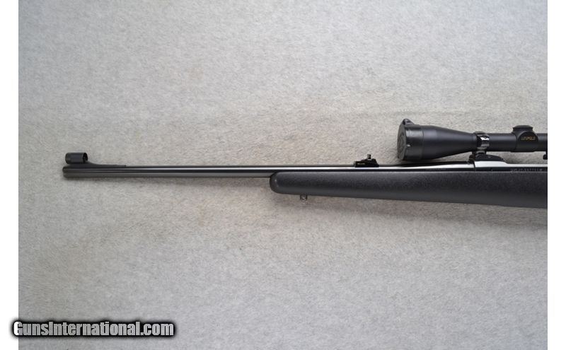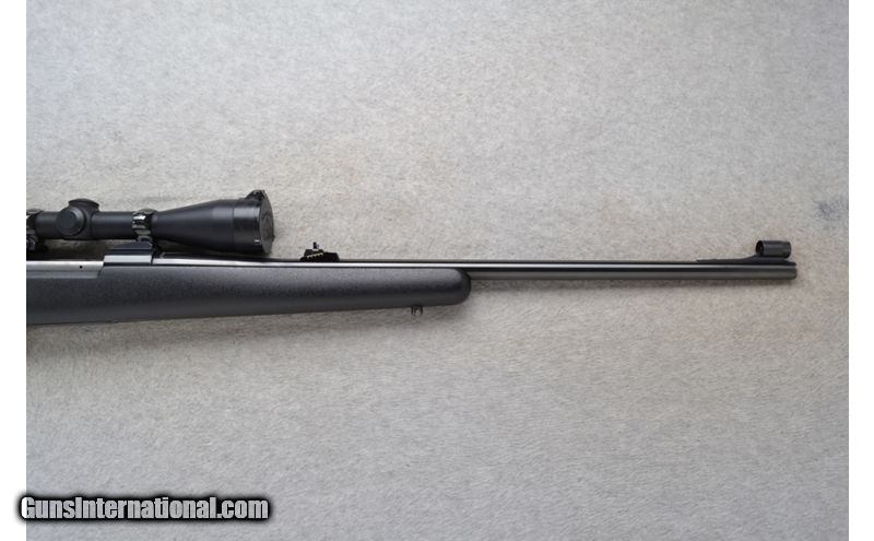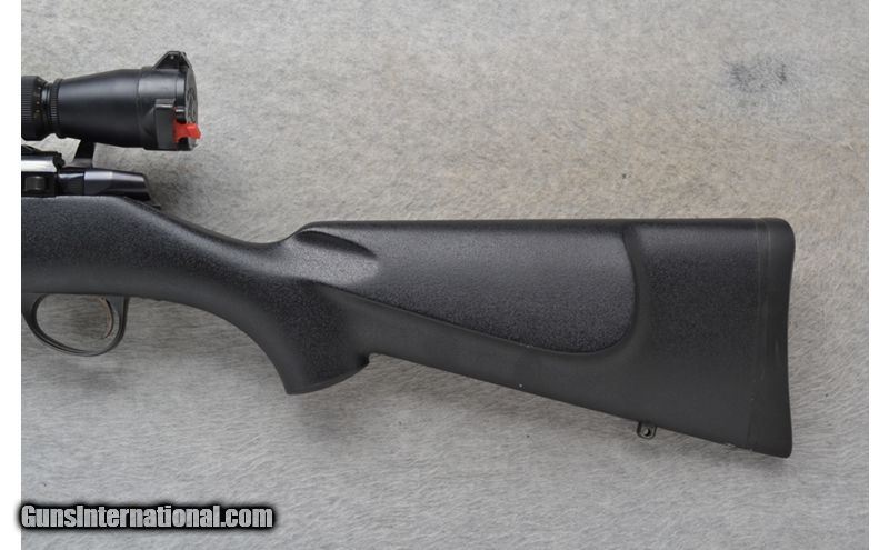Description: This Sako Model AV is a right hand bolt action rifle in .300 Win. Mag. Cal. It has a 23 inch barrel. A hooded front blade sight and an adjustable notch middle sight on a ramp. It is outfitted with a Leupold Scope. The butt stock is a lightly textured grip black polymer pistol grip with a raised cheek piece. The forearm is a lightly textured grip black polymer. .300 Winchester Magnum SOLD Chambers: Right hand bolt action 4 round internal magazine with a hinged floor plate. Metal Condition: Excellent. Bore Condition: Excellent. Barrels: 23 inch. Triggers: Grooved. Stock Dimensions: LOP 13 5/8 inches. Fore End: Lightly textured grip black polymer. Butt Pad: Sako black rubber pad. Weight: 8 lb. 6 oz. Sights: Raised hooded front blade. Adjustable notch middle on a ramp. Leupold 3x9 VARI-X IIc Scope. Item Location: Richfield, WI |
