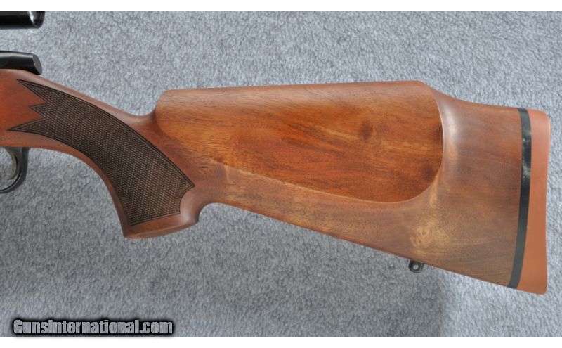 Description: SOLD Caliber Info: .338 Winchester Magnum Metal Condition: Showing in exceptional condition with no visible wear Wood Condition: Appears in new condition Bore Condition: Bright and sharp with light copper fouling on the lands Barrels: 24 Stock: Checkered Monte Carlo pistol grip Stock Dimensions: 14" LOP Fore End: Checkered Point Pattern Butt Pad: Sako Finland Red Rubber Weight: 8 lbs 14 oz Sights: Hooded Blade Front, Express Leaf Rear, Fitted with a Leupold M8 6X42 Scope on Burris two piece bases Item Location: Grand Junction, CO |
