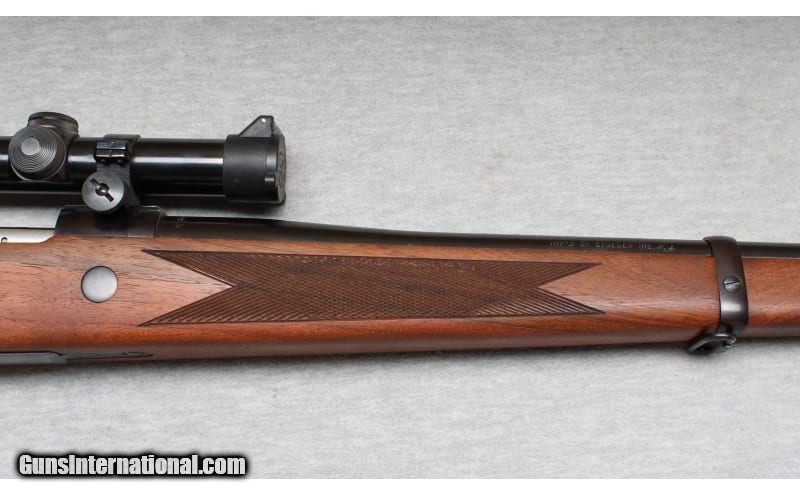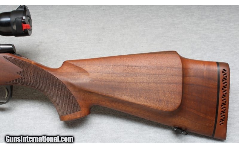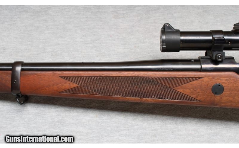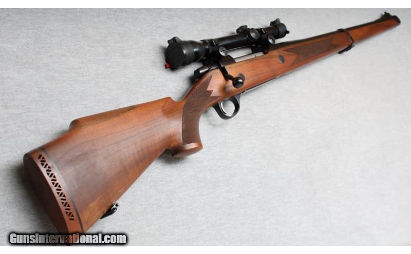 Description: Excellent condition, light wear, few small scratches. Premium quality bolt action rifle - 20" barrel chambered for the powerful .375 H&H Magnum cartridge, smooth action, and crisp trigger pull. Beautiful natural finish checkered wood, with right hand cheek rest & Mannlicher style forend, factory pad and sling swivels. Weaver K3-C3 scope installed. None SOLD Chambers: Bolt action Metal Condition: Excellent Wood Condition: Excellent Bore Condition: Bright Barrels: 20 Triggers: Factory Stock Dimensions: 14" LOP Fore End: Checkered Butt Pad: Factory pad Sights: Weaver K3-C3 scope Item Location: La Vista, NE |