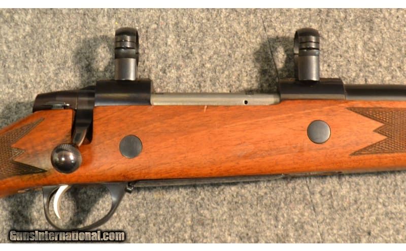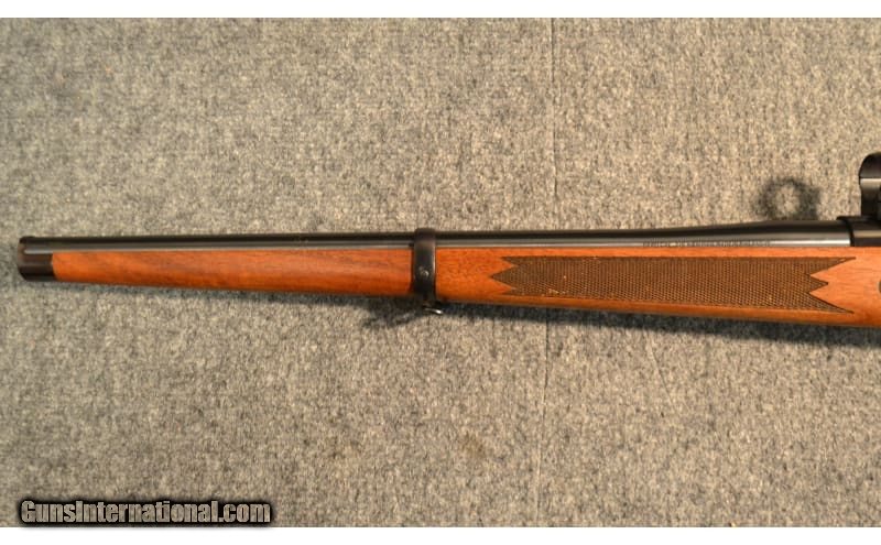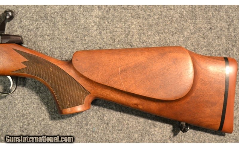 Description: Bluing is in excellent shape except for some small handling scratches. Wood is in okay shape, finish is intact, but there are numerous scratches around where the receiver is and there appears to be a large, repaired crack along the bottom near the bottom metal. Bore is 95% or better. Barrel has magna ports near the muzzle. Interested in purchasing this firearm? Give the Thornton, CO Cabela's a call! 303.625.6054 .375 H&H Magnum SOLD Metal Condition: Excellent Wood Condition: Good Bore Condition: Excellent Barrels: 19.5 Stock Dimensions: 14" LOP Sights: Scope Rings Item Location: Thornton, CO |