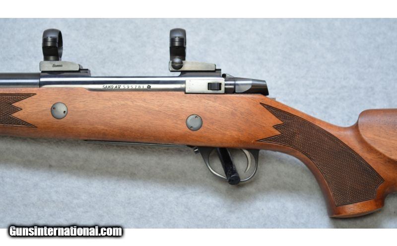 Description: SOLD Manufacturer: SN#: 595781 Caliber Info: 375 H&H Metal Condition: Excellent Wood Condition: Excellent Bore Condition: Bright And Shiny With Crisp Rifling. Barrels: 23 Triggers: Grooved Stock: Checkered Pistol Grip Monto Carlo Stock Dimensions: 14" LOP Fore End: Checkered Butt Pad: Sako Rubber Weight: 7 lbs. 14 oz. Sights: Front Hooded Blade, Rear Adjustable Notch with Scope Bases and Rings Item Location: Hazelwood, MO |