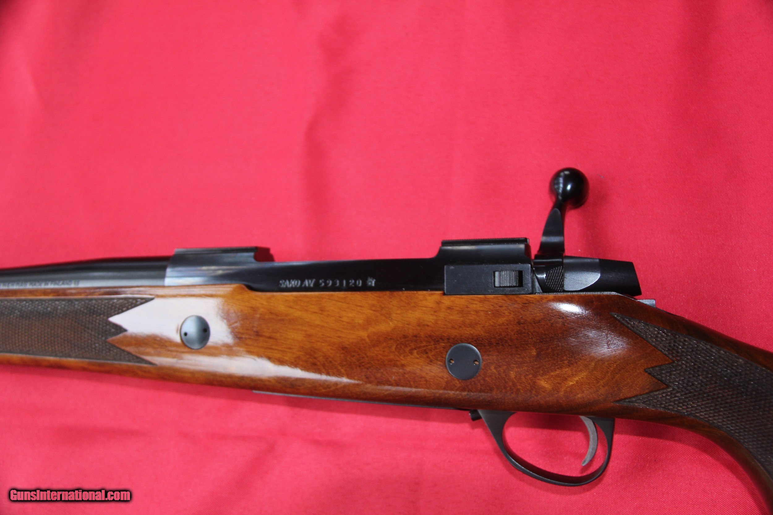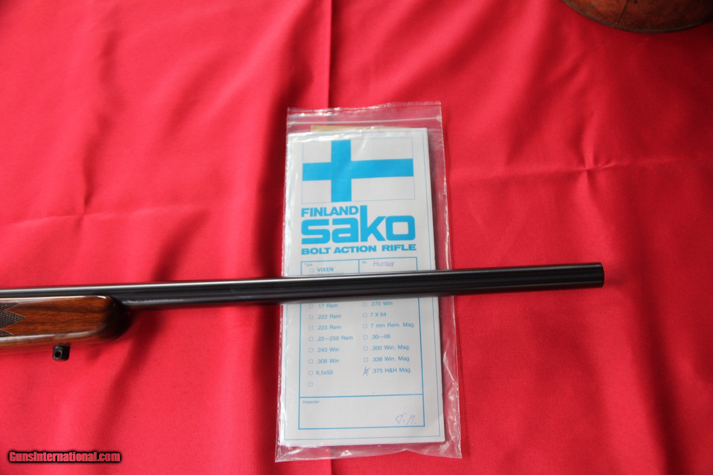 Description: Wisconsen buyer please call. Sako AV 375 H&H Magnum like new with exceptional wood.. Great caliber for elk up to dangerous African game. No sights, scope only. No box but instuction pamphlet comes with it. Not a mark on this rifle! Shipping $79.00 in a hard case insured. SOLD Rifle Caliber: .375 H&H Magnum Manufacturer: Sako Model: AV Serial Number: 593150 Barrel Length: 24 inches Condition: Like new Metal Condition: Like new Wood Condition: Like new Bore Condition: As new Action: Bolt |