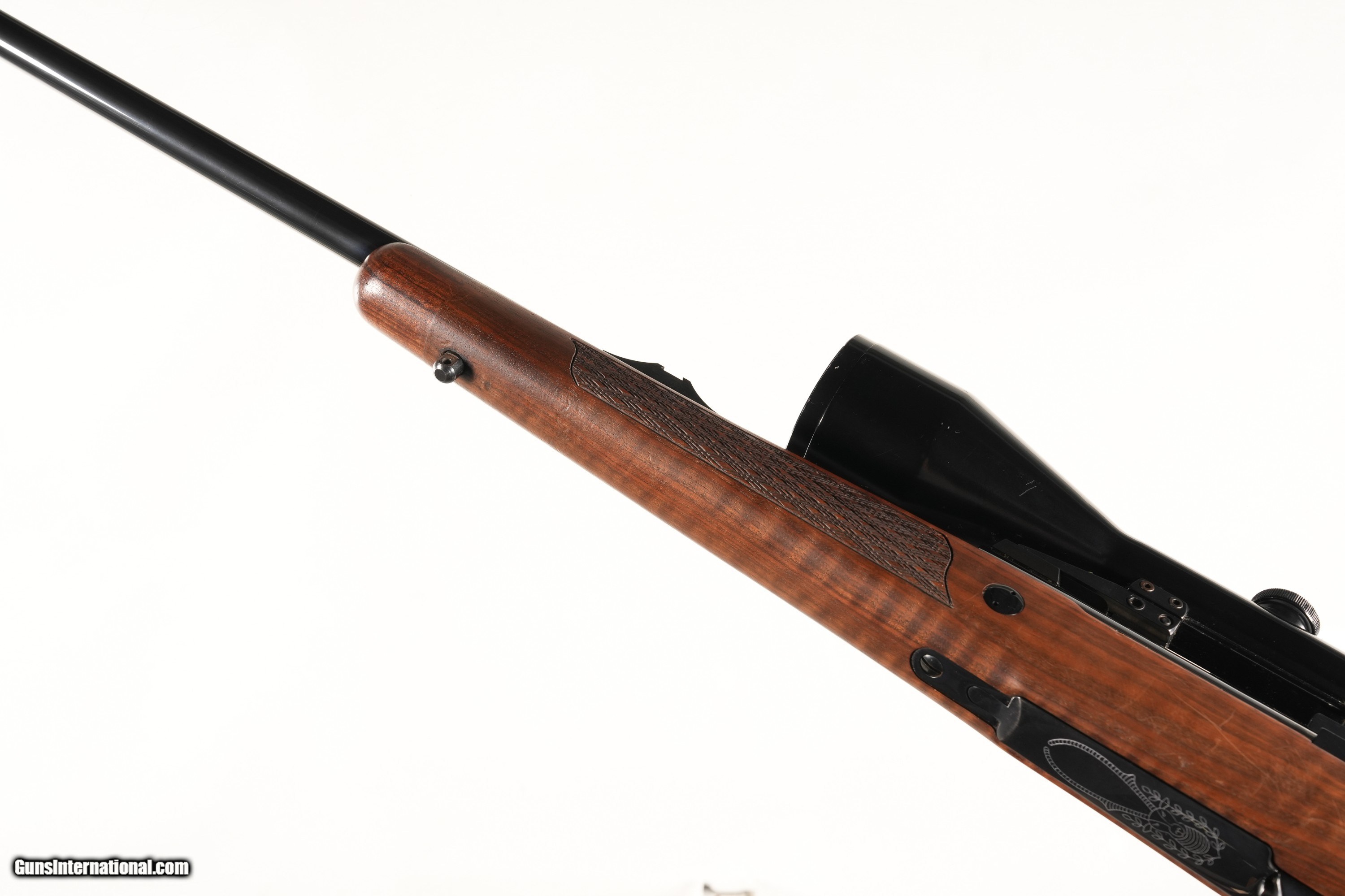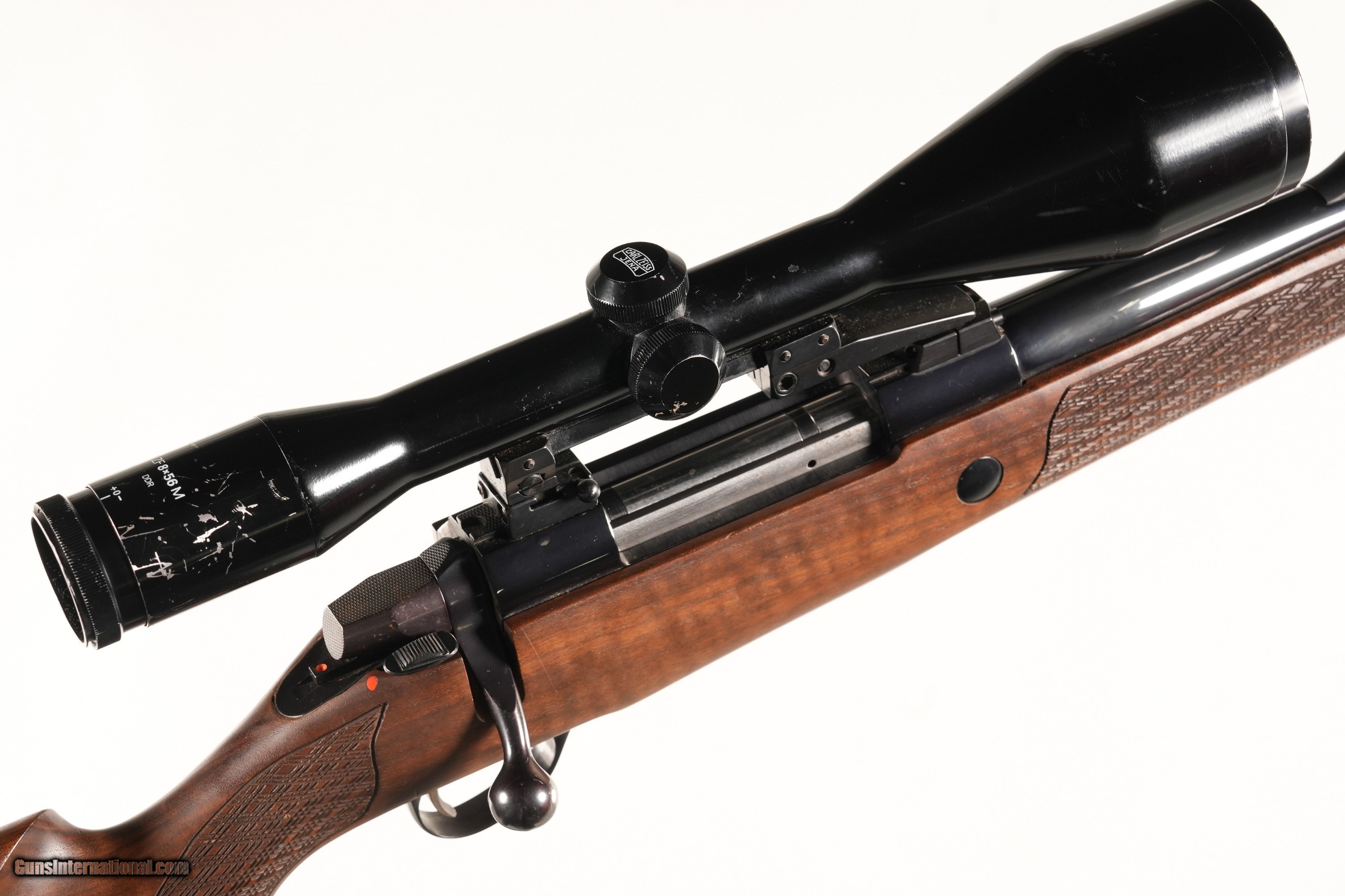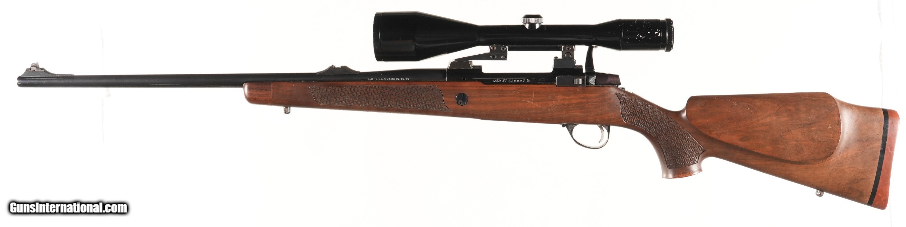 Description: Sako AV Bolt action rifle Cal, 30-06 with Zeiss 8 power scope is quick detachable rings and bases. Oil finished stock with factory recoil pad 14" LOP. skip-line checkered wrist and forearm. Condition, Excellent with bright bore and excellent mechanically rear sight is absent. Stock is very good with light handling. Optics are clear. • Free Shipping, No Credit Card Fees. • Lay-a-way available for this firearm. • 1/3 Down, a 1/3 in 30 Days, 1/3 in 60 Days. SOLD Manufacturer: Sako Model: AV Serial Number: 620097 Barrel Length: 23 |