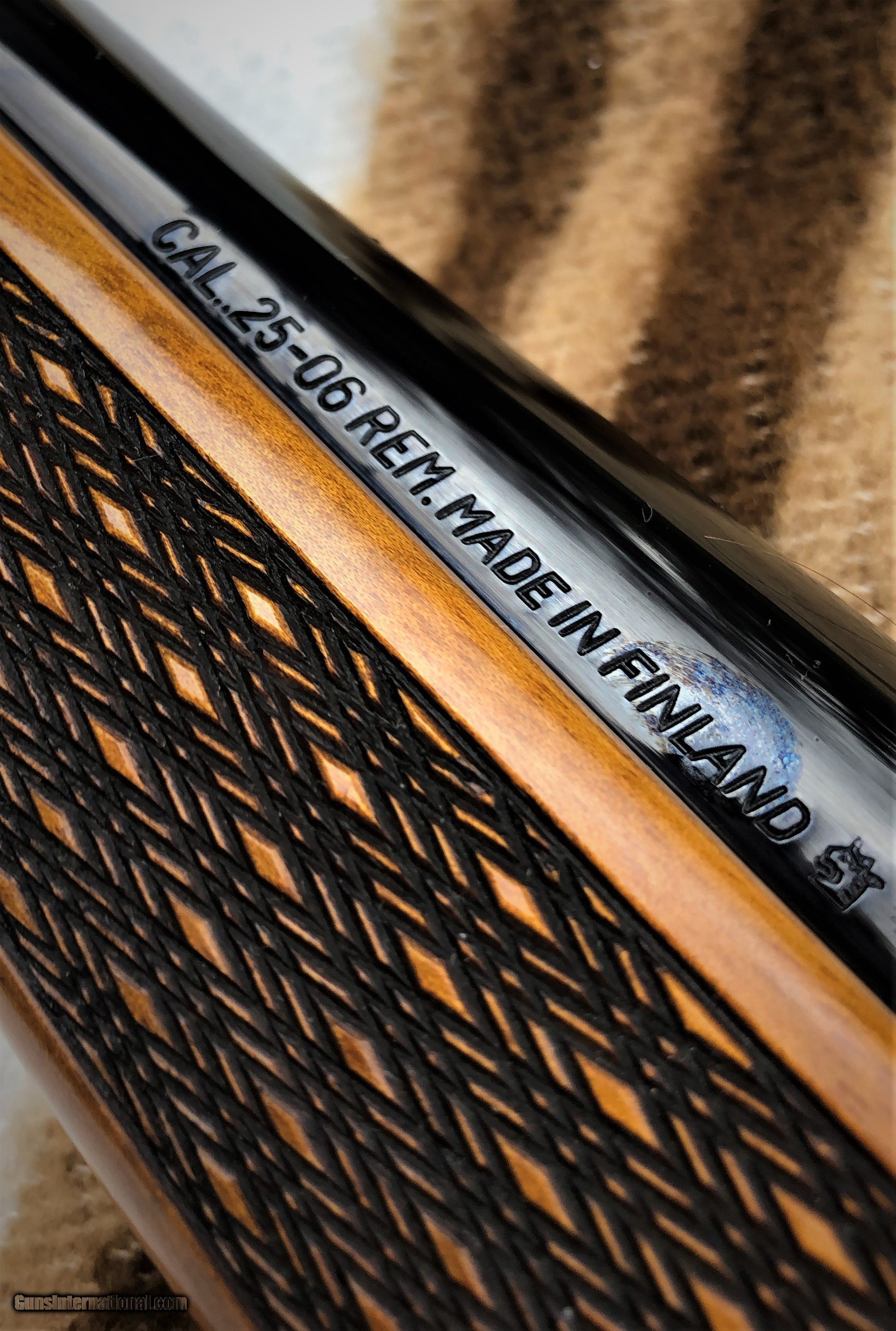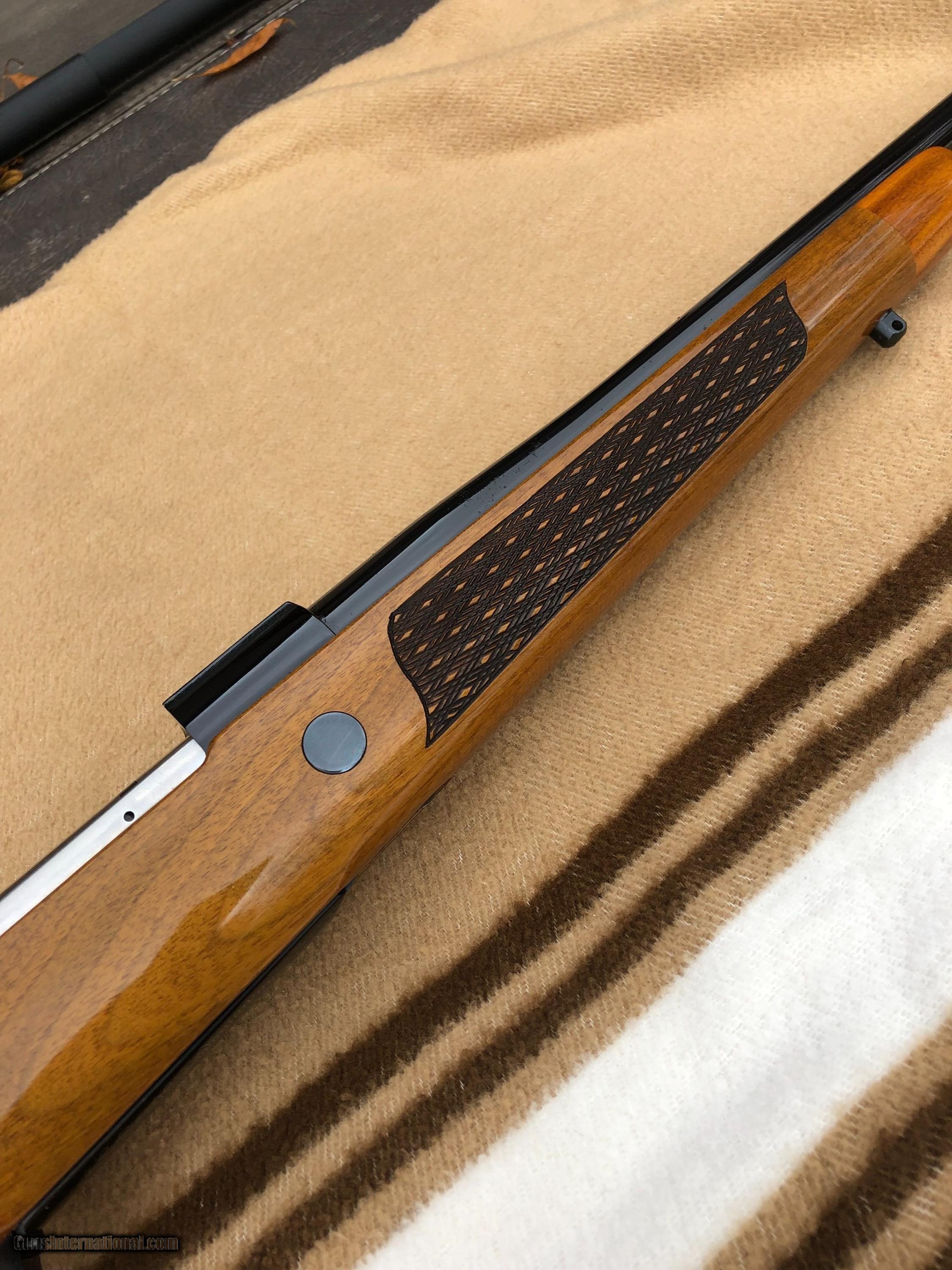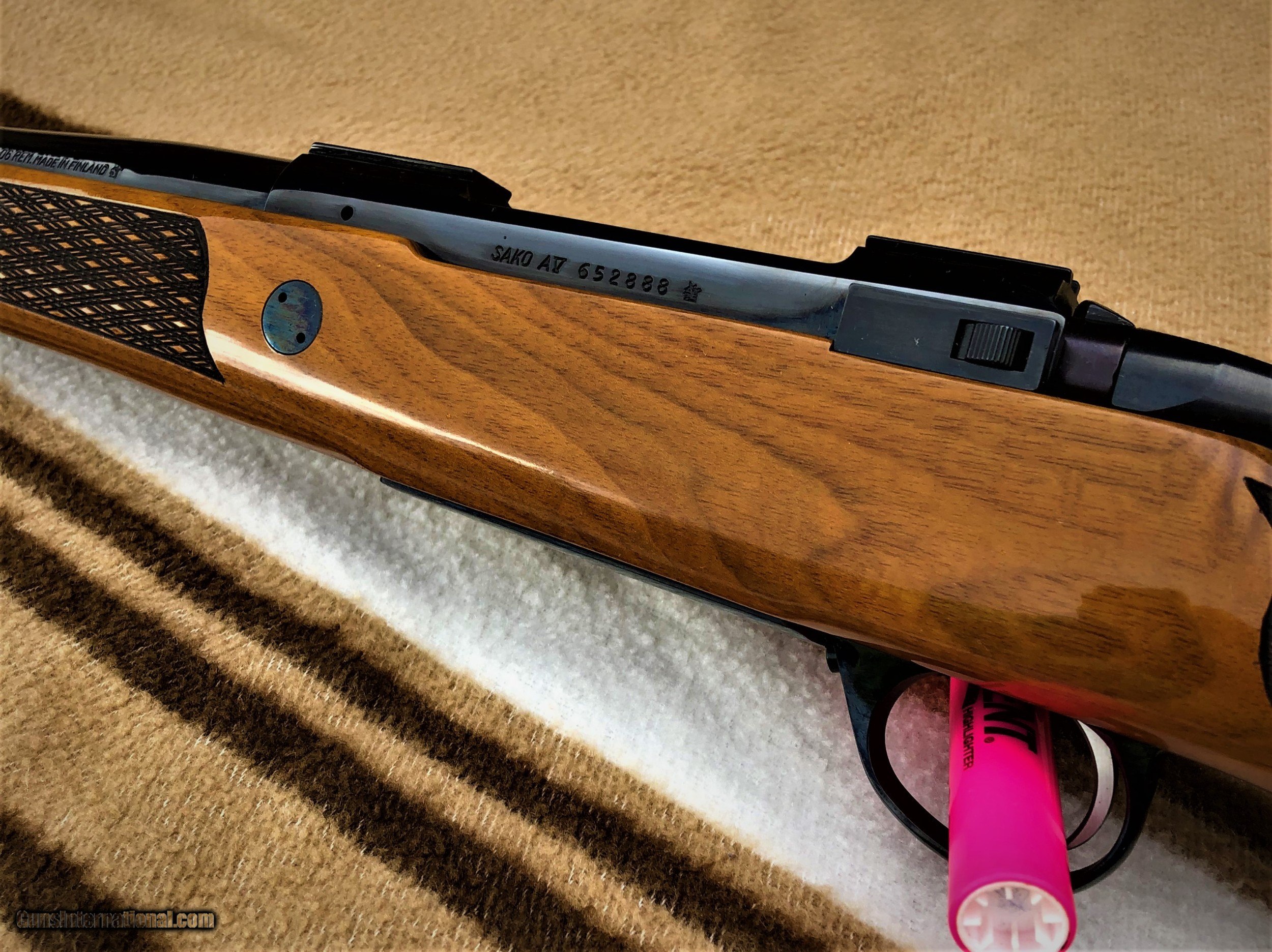 Description: One Sako AV Deluxe 25-06 Remington Lacquer finish, right hand palm swell. One piece forged steel receiver, integral scope mount rails, twin lug front locking lugs, 5 round internal magazine, integral recoil lug, mechanical -98 type ejection of spent rounds. Three way adjustable trigger, hinged engraved floorplate, and engraved trigger guard, Sako deluxe pistol grip. . one piece forged bolt. One in Ten twist, total length 44 inched. No factory box . Serial number on Bolt matches receiver number, checkering is perfect. See photos for condition. No sales to California, NO credit cards, NO paypal. Personal checks preferred. Three day no hassel inspection period. Shipping USPS ground $60.00 SOLD Rifle Caliber: .25-06 Remington Manufacturer: Sako Model: Deluxe Barrel Length: 23 Condition: collector Metal Condition: 100% Wood Condition: 99.5% Barrel Type: medium Action: bolt Triggers: ADJUSTABLE Stock: right hand palm swell Fore End: rose wood Butt Pad: rubber LOP: 14 Finish: lacquer Weight: 7.25 Sights: none Engraving: yes |