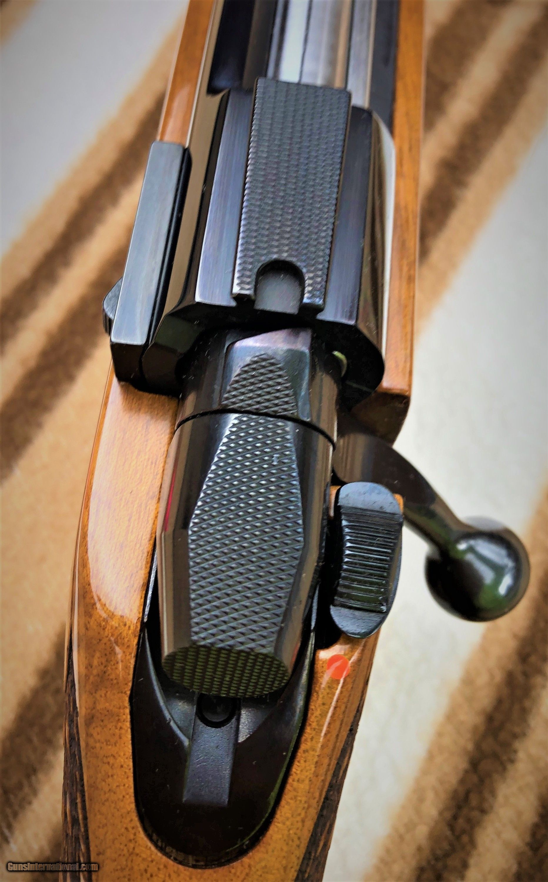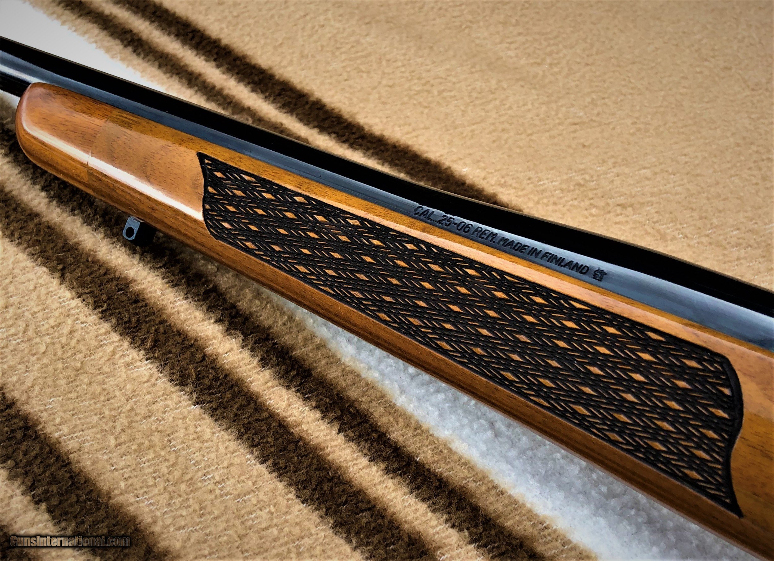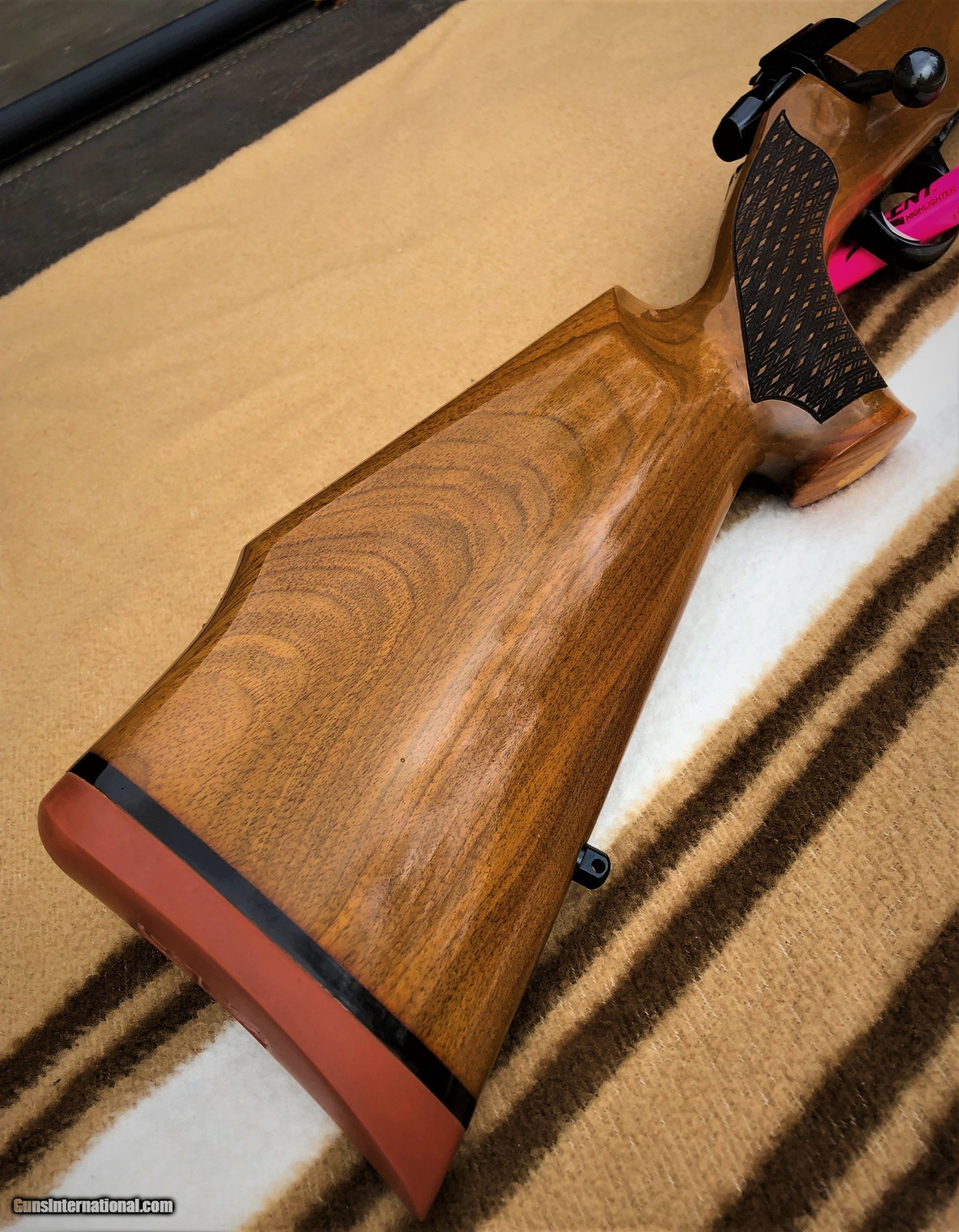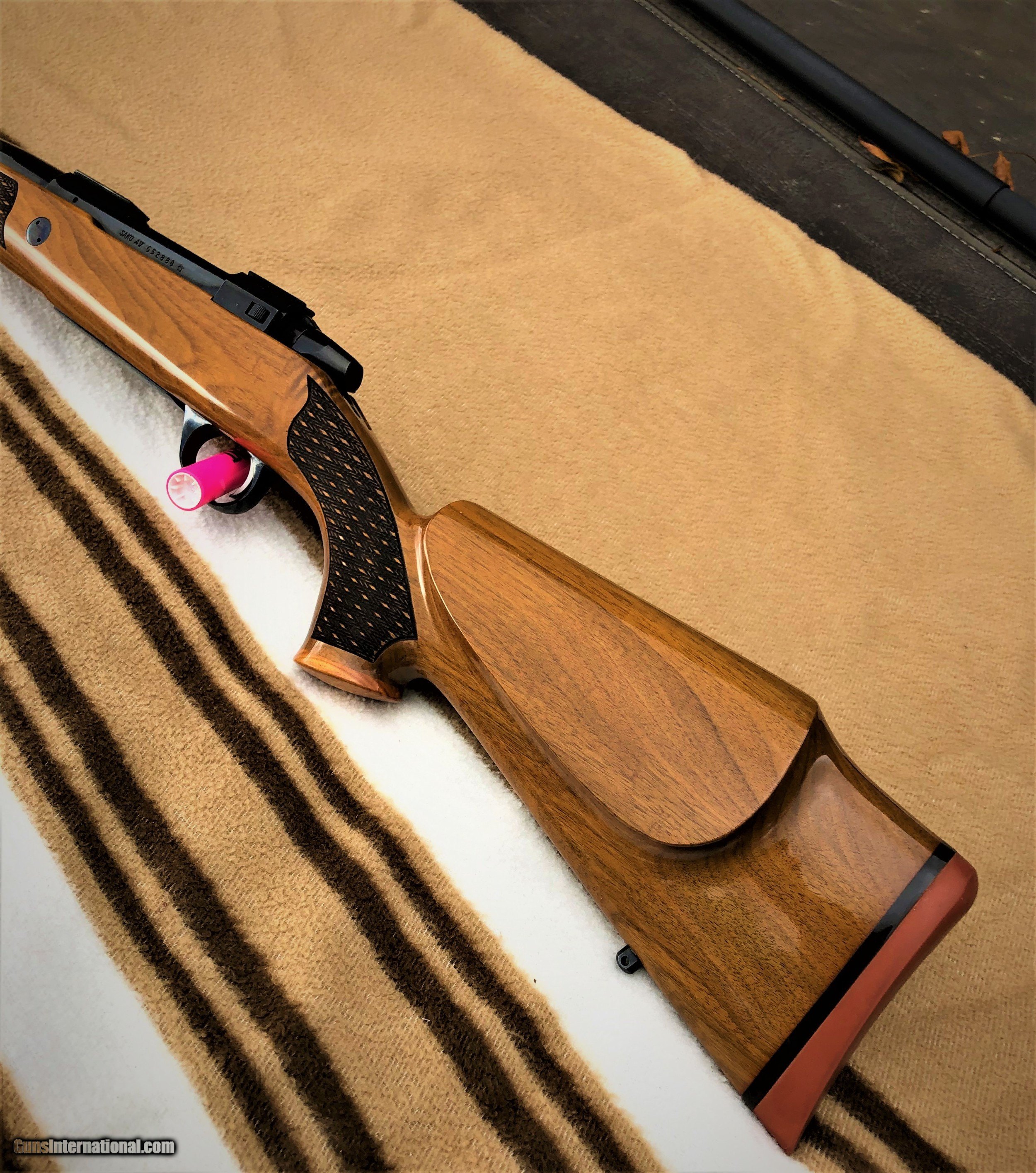 Description: One Sako AV Deluxe 25-06 Remington Lacquer finish, right hand palm swell. One piece forged steel receiver, integral scope mount rails, twin lug front locking lugs, 5 round internal magazine, integral recoil lug, mechanical -98 type ejection of spent rounds. Three way adjustable trigger, hinged engraved floorplate, and engraved trigger guard, Sako deluxe pistol grip. . one piece forged bolt. One in Ten twist, total length 44 inched. No factory box . Serial number on Bolt matches receiver number, checkering is perfect. See photos for condition. No sales to California, NO credit cards, NO paypal. Personal checks preferred. Three day no hassel inspection period. Shipping USPS ground $60.00 SOLD Rifle Caliber: .25-06 Remington Manufacturer: Sako Model: Deluxe Barrel Length: 23 Condition: collector Metal Condition: 100% Wood Condition: 99.5% Barrel Type: medium Action: bolt Triggers: ADJUSTABLE Stock: right hand palm swell Fore End: rose wood Butt Pad: rubber LOP: 14 Finish: lacquer Weight: 7.25 Sights: none Engraving: yes |