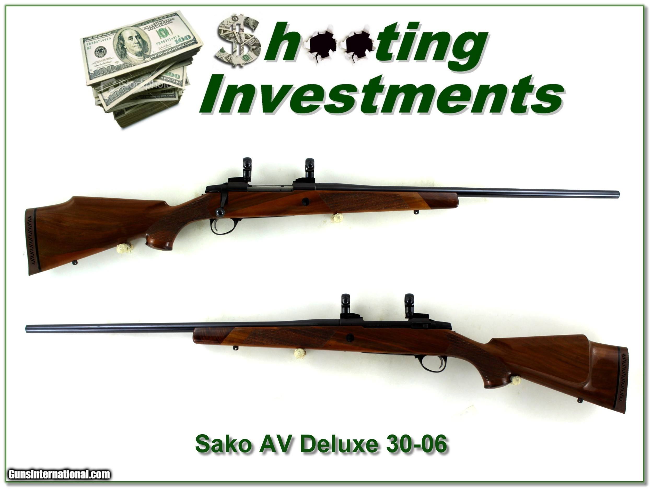 Description: Collectors, this is a beautiful and top condition Sako 75 in 30-06. It is the Deluxe model with beautiful honey blond high grade wood, skip line checkering, deep gloss blur and etched floorplate. It comes with bases and rings as seen. I find no marks of note. It will make a fine addition to your collection or be an impressive hunting gun. I am selling this one on consignment and as such lay-a-way can’t be used. It does of course have the standard 3-day inspection. Shipping and insurance is $49. Please email me with any questions or larger pictures. (Consign your quality firearms with Shooting Investments for only 12%! Let me know if you have any you would like to sell!) 22-1278 Payment: Payment is by Money Order, Cashiers Check or Personal Check. I can now also accept Credit Cards (MasterCard, Visa, Discover & American Express) with a 3% convenience fee. Shipping: The shipping charge will be listed in each description. It is $49 for most long guns. Some heavy guns, over 48in boxes or those insured for over $2000 will be higher. Shipments to Alaska and Hawaii are higher because air shipment is required. Most firearms are shipped on Tuesday and Thursday and usually in 5 days of receipt of payment. We package all shipments carefully and insure them. Optics are shipped Priority Mail and most other non-firearm shipments are shipped First Class. Returns: Our return policy is simple. If for any reason you are not pleased with your purchase, you may return your item for a full refund of purchase price. Ammunition cannot be returned. It is important to us that you are happy. Guns cannot be fired or dissembled before returning them and they must be returned in the same condition as received. Notification of a return must occur with-in 3 days of receipt at your dealer. Shipping, convenience and dealer fees are not refundable and are the responsibility of the buyer. Lay-a-way: If needed, we offer a 60 day lay-a-way option on most firearms. It is 1/3 now, 1/3 in 30 days and 1/3 in 60 days. Lay-a-way firearm sales are final and if not completed the first payment cannot be returned. Consigning your firearms with Shooting Investments: We will help you get top dollar for your firearms. While most local guns shops charge 20% or more, our fee is only 12% with a minimum of $75. At your local gun shop it might take months to sell. Selling on-line provides instant access to thousands of interested buyers. You won’t find any other on-line dealer willing to sell your firearms for only 12% or listing every gun on 3 separate s. Selling through an House typically costs the seller 15% and the buyer an addition 15% (so 30%) and you have to wait several months to sell and longer to receive funds. If properly priced, we will sell your firearms in a few weeks. Send us an email or give us a call and we’ll explain how easy it is for you to get top dollar. Trading: Trading for use is really just buying your gun to re-sell. If you have a gun you want to trade, please email a picture and we will let you know what we can give or it. You will always get more if we sell it for you on consignment. Help for California Buyers: We are happy to ship to California. It is the buyer’s responsibility to make sure any item you buy is legal in your state. We are also happy to help with your purchase of a firearm from someone other than us. If you see a gun you would like to buy but the seller can’t or won’t ship to California they can ship to use and we’ll then ship it to your California dealer. The cost for this service is only $30 + shipping. Let us know if we can help! SOLD |