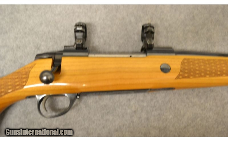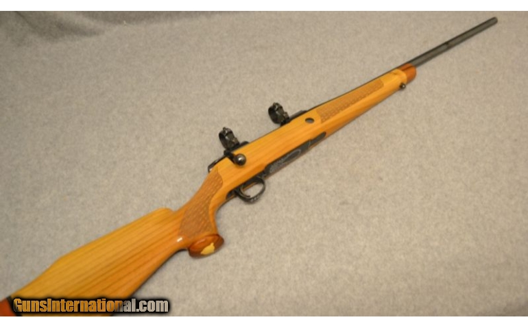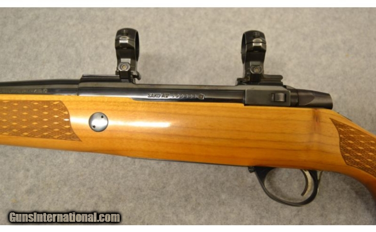Description: Beautiful rifle. Well built and strong actioned. Ideal for pursuing either medium or big game over vast distances. Excellent choice for either a Fine ifles or Sporting Rifle collection. SOLD Manufacturer: SN: 599393 Caliber Info: 7MM REM MAG. Metal Condition: Shows original finish with trivial handling marks and scabbard wear. Wood Condition: Shows original finish with trivial handling marks and field use. Bore Condition: Clean with sharp lands. Barrels: 24" with magna-porting. Triggers: Factory. Stock: Grade III select German walnut with Monte Carlo cheek piece, pistol grip, Finnbear logo contrasting German walnut pistol grip cap, and sharp skip line checkering. Stock Dimensions: 14 1/4" LOP. Fore End: Grade III select German walnut with contrasting German walnut fore end cap, and sharp skip line checkering. Butt Pad: Sako logo red rubber. Weight: 8 lb. 6 oz. Sights: None. Item Location: Anchorage, AK |