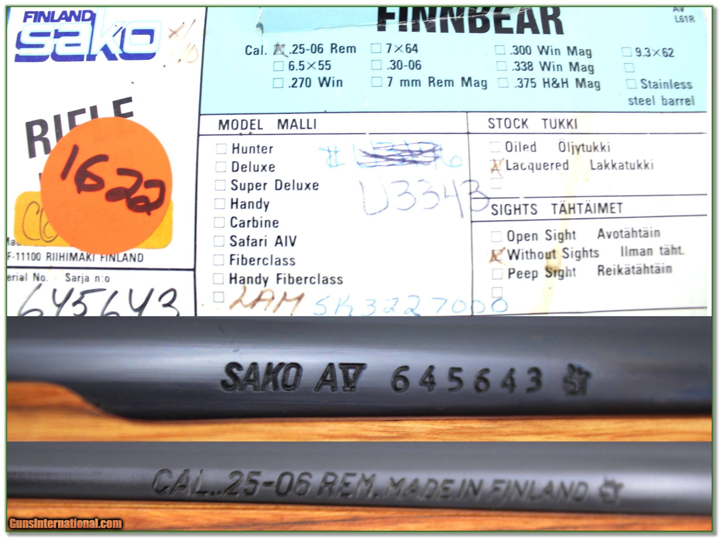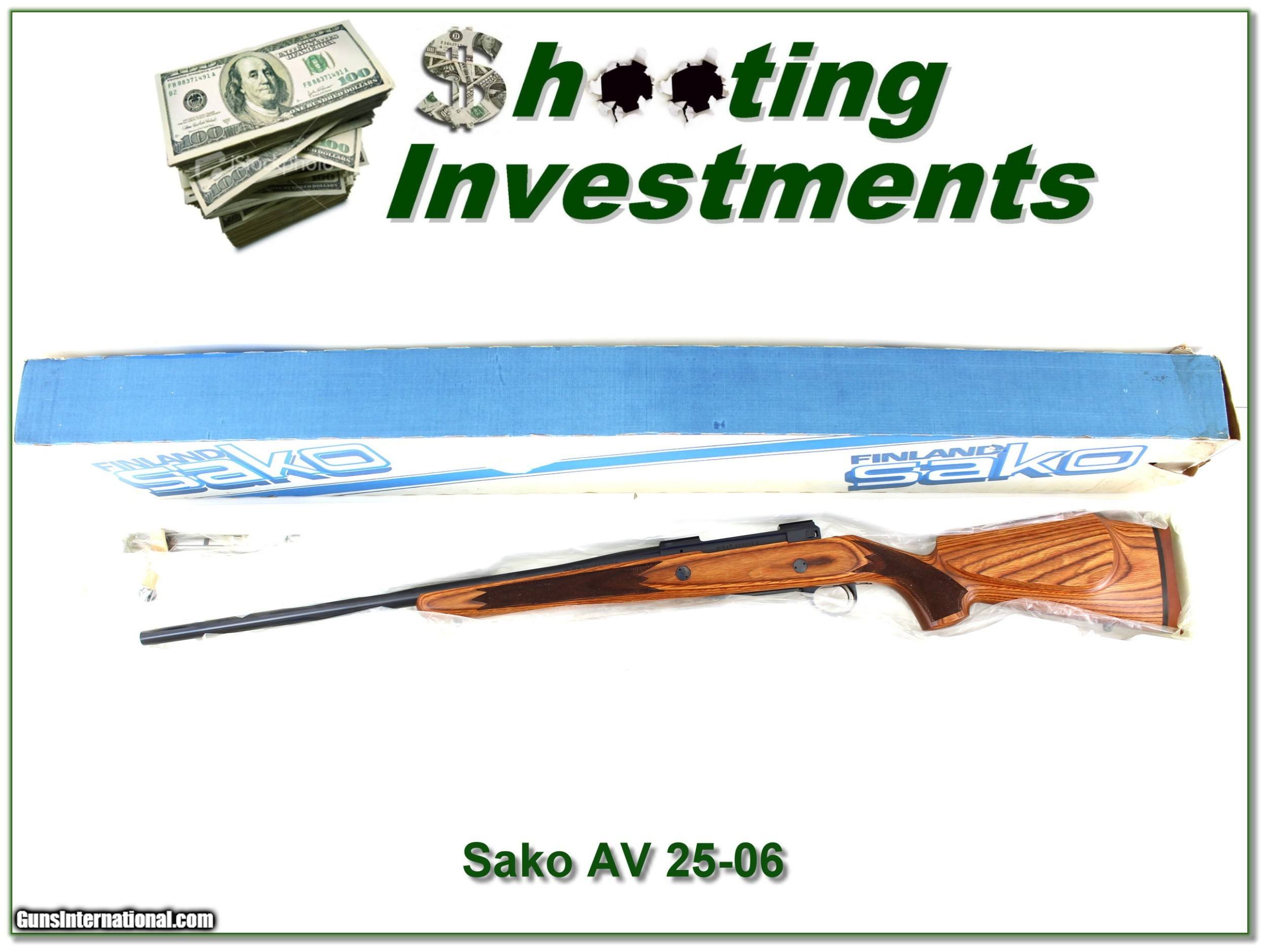 Description: Big game hunters, shooters and collectors, this is new, unfired and perfect Sako AV Laminated in the VERY hard to find 25-06 Remington with 23in barrel. It comes as seen in factory box (manual is missing). Again, new, unfired! You may never see another one. Shipping and insurance is $39. Please email me with any questions or larger pictures. (Consign your quality firearms with Shooting Investments for only 12%! Let me know if you have any you would like to sell!) 21-0415 Payment: Payment is by Money Order, Cashiers Check or Personal Check. I can now also accept Credit Cards (MasterCard, Visa, Discover & American Express) with a 3% convenience fee. Shipping: The shipping charge will be listed in each description. It is $39 for most firearms. Some heavy guns or those insured for over $2000 will be higher. Shipments to Alaska and Hawaii are higher because air shipment is required. Most firearms are shipped on Tuesday and Thursday and usually in 5 days of receipt of payment. We package all shipments carefully and insure them. Optics are shipped Priority Mail and most other non-firearm shipments are shipped First Class. Returns: Our return policy is simple. If for any reason you are not pleased with your purchase, you may return your item for a full refund of purchase price. Ammunition cannot be returned. It is important to us that you are happy. Guns cannot be fired or dissembled before returning them and they must be returned in the same condition as received. Notification of a return must occur with-in 3 days of receipt at your dealer. Shipping, convenience and dealer fees are not refundable and are the responsibility of the buyer. Lay-a-way: If needed, we offer a 60 day lay-a-way option on most firearms. It is 1/3 now, 1/3 in 30 days and 1/3 in 60 days. Lay-a-way firearm sales are final and if not completed the first payment cannot be returned. Consigning your firearms with Shooting Investments: We will help you get top dollar for your firearms. While most local guns shops charge 20% or more, our fee is only 12% with a minimum of $75. At your local gun shop it might take months to sell. Selling on-line provides instant access to thousands of interested buyers. You won’t find any other on-line dealer willing to sell your firearms for only 12% or listing every gun on 3 separate s. Selling through an House typically costs the seller 15% and the buyer an addition 15% (so 30%) and you have to wait several months to sell and longer to receive funds. If properly priced, we will sell your firearms in a few weeks. Send us an email or give us a call and we’ll explain how easy it is for you to get top dollar. Trading: Trading for use is really just buying your gun to re-sell. If you have a gun you want to trade, please email a picture and we will let you know what we can give or it. You will always get more if we sell it for you on consignment. Help for California Buyers: We are happy to ship to California. It is the buyer’s responsibility to make sure any item you buy is legal in your state. We are also happy to help with your purchase of a firearm from someone other than us. If you see a gun you would like to buy but the seller can’t or won’t ship to California they can ship to use and we’ll then ship it to your California dealer. The cost for this service is only $30 + shipping. Let us know if we can help! SOLD |